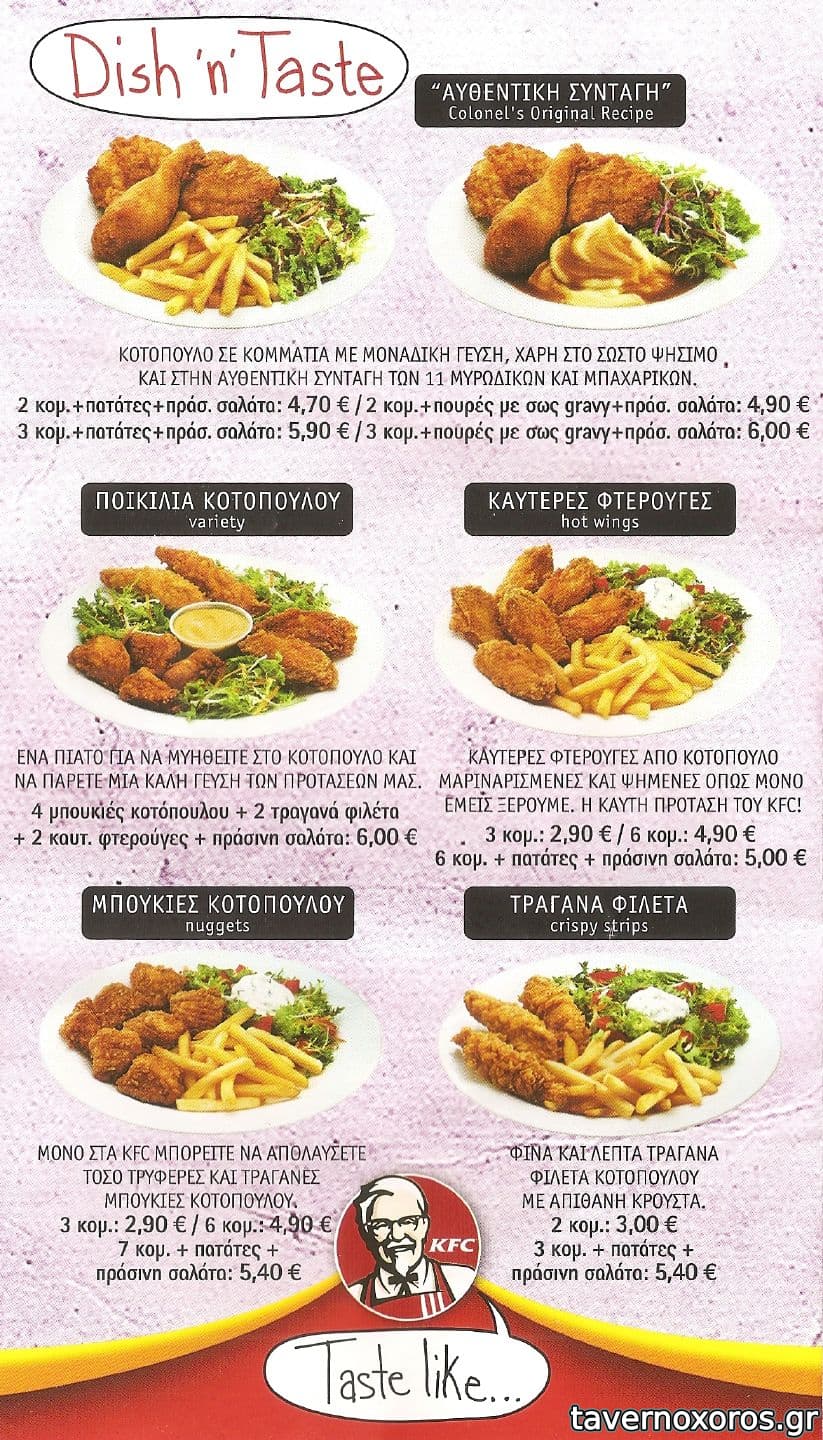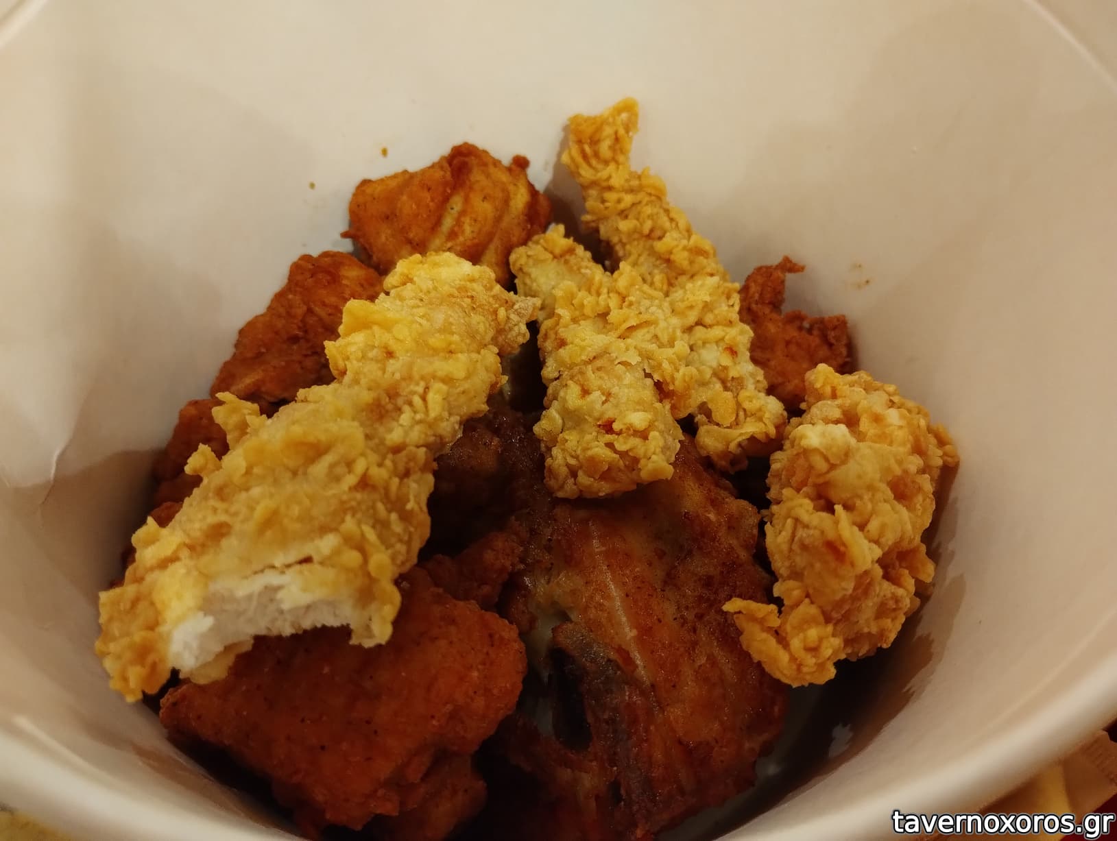 Crispy strips πολύ καλά, wings καλά, chicken on the bone ζόρικο (τρώγεται υποχρεωτικά με το χέρι!).
