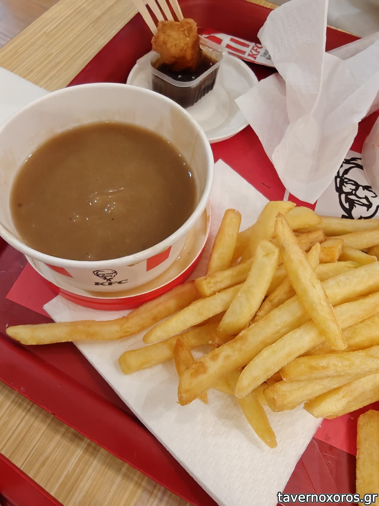 Πήραμε ένα bucket που είχε μία έκπτωση με κουπόνι της vodafone (big deal bucket λεγόταν νομίζω) και επίσης ένα burger deal, με πατάτες και αναψυκτικό. Από ψιψιψόνια ένα coleslaw κι ένα ρύζι με teriyaki (!). Το ρύζι δε λέει τίποτε, απορώ γιατί υπάρχει κιόλας. Το coleslaw είναι οκ απλώς.