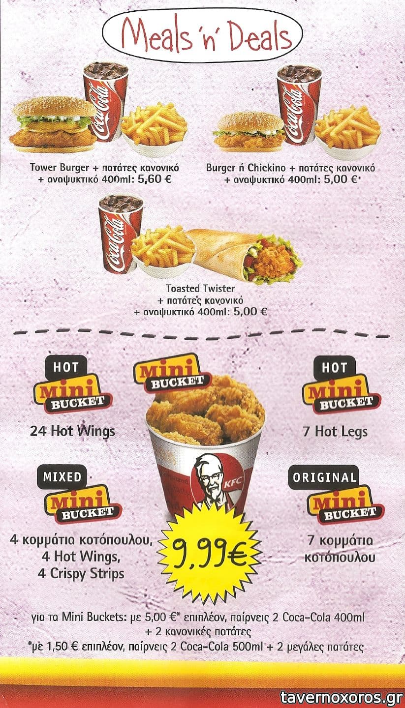 Προσφατα είπα να πάρω ξανα, το μεγάλο κουτι με τα διαφορα κομμάτια(νομιζω 15) για 4 άτομα κανονικα, με 3 πατατες, coleslaw και αναψυκτικο.
