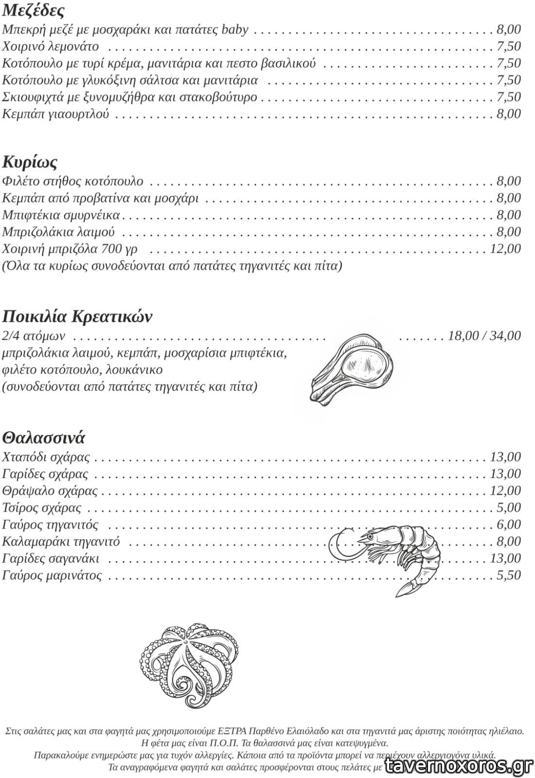 | Λέξεις κλειδιά | Τσιπουράκι, #πεζόδρομος, #ντάκος, #μανιτάρια, #καβουρμάς, #σουτζούκι, #κολοκυθοκεφτέδες, #μπεκρή μεζές, #κοτόπουλο, #σουτζουκάκια, #μπιφτεκάκια, #χοιρινή, #χταπόδι, #γαρίδες, #θράψαλα, #γαύρος |