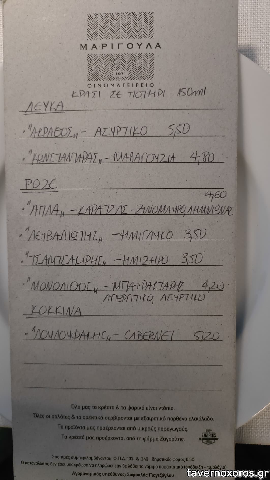 Κρασί έχει χύμα, εμείς δοκιμάσαμε εμφιαλωμένο που btw είχε σε πού καλή τιμή (Καπνίας του Χατζιμηχάλη στα 34 ευρώ-όταν εδώ Θεσσαλονίκη το συγκεκριμένο δεν το βρίσκεις πλέον κάτω από 50euros).
