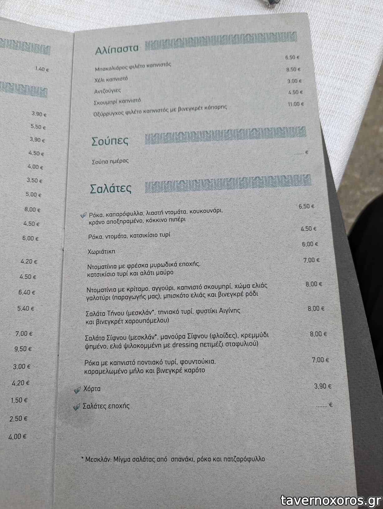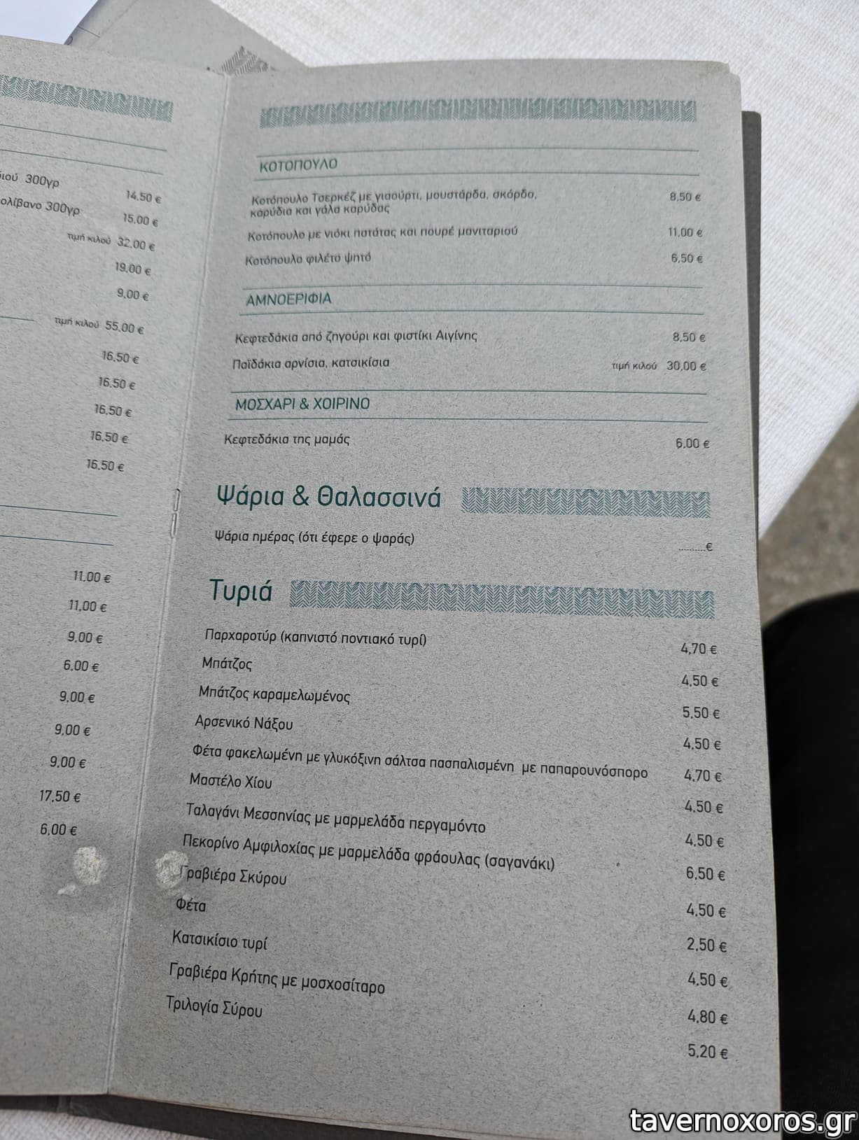 το μενου αλλαζει αναλογως για παραδειγμα τι υπαρχει σε θαλασσινο εκεινη την ημερα.