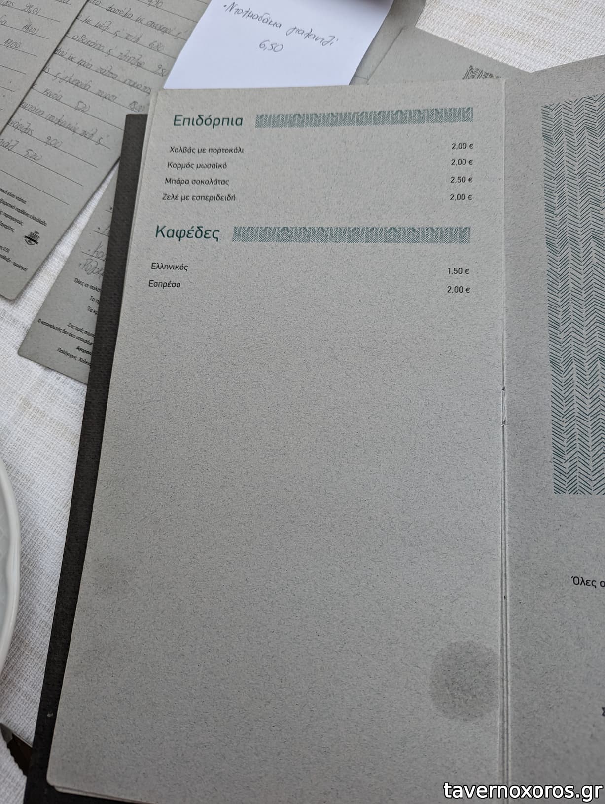Μαζι με μια ρετσινα κεχριμπαρι, 1 τσιπουρο κ μια κοκα, μας βγηκε περιπου 55€.