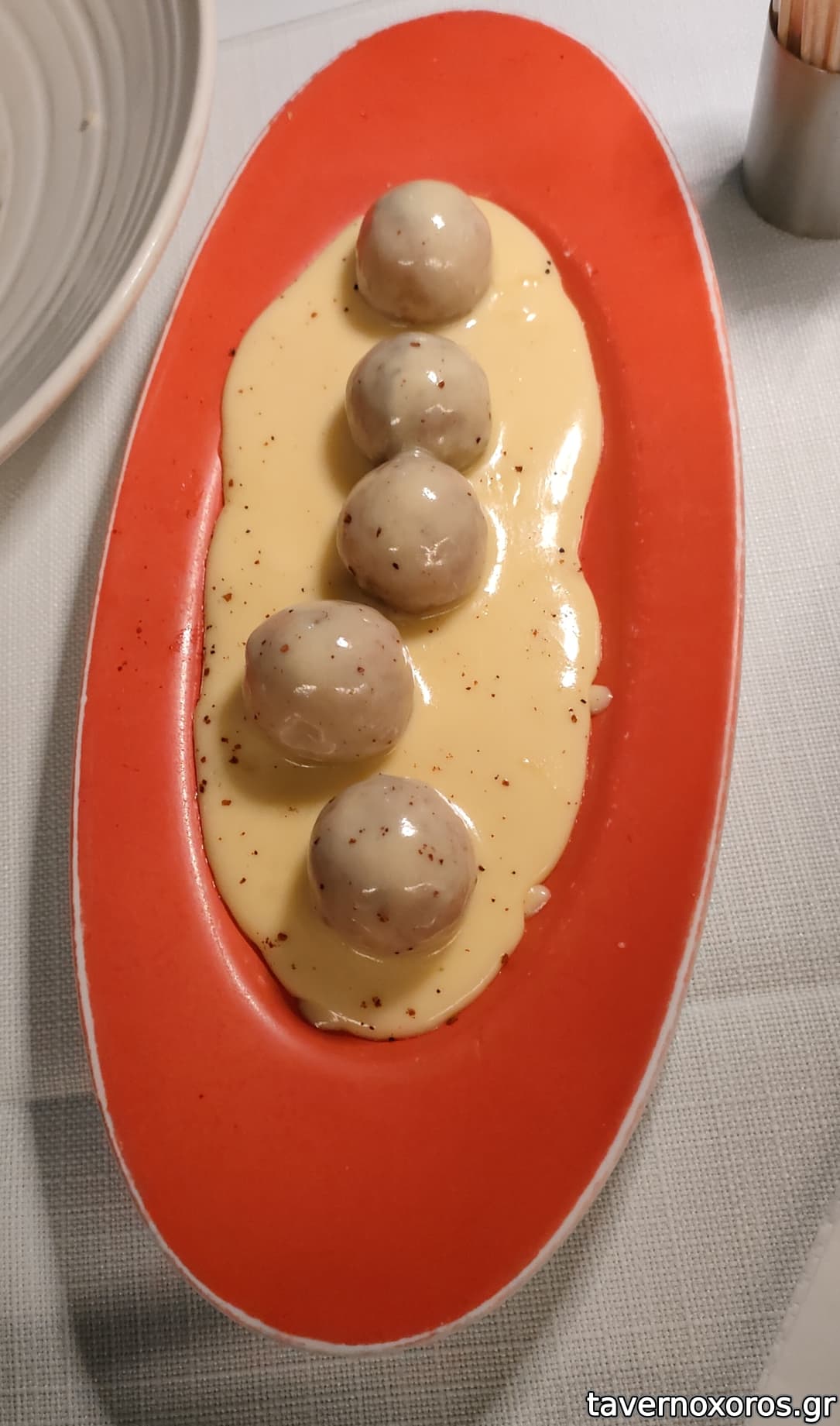 - ρυζοκροκέτες με φρέσκα και ξερά μανιτάρια (πιο πολύ σε κεφτέδες έφερναν, παρά σε κροκέτες), νόστιμο, ενδιαφέρον πιάτο, αλλά δεν θα το επέλεγα γιατί δεν μου άρεσε η σύστασή και η μαλακή υφή του (γενικά, δεν μου αρέσουν και τα aranchini οπότε count that in όταν διαβάσετε το σχόλιο)