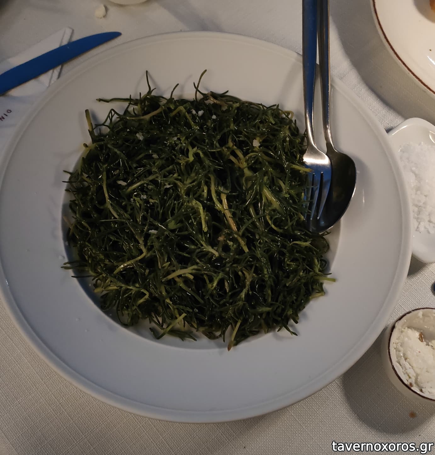 - σαλάτα με ντοματίνια, φέτα, με μισό πιάτο κρίταμα και μισό εστραγκόν (δεν υπάρχει σαν πιάτο ως τέτοιο, το έφτιαξε κατά παραγγελία), πολύ καλό