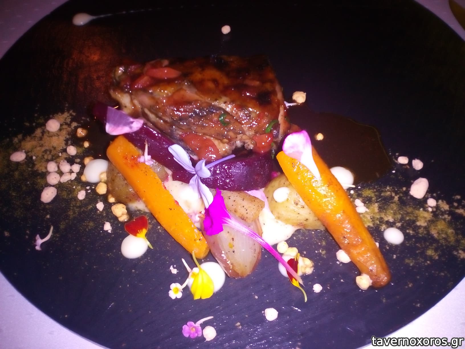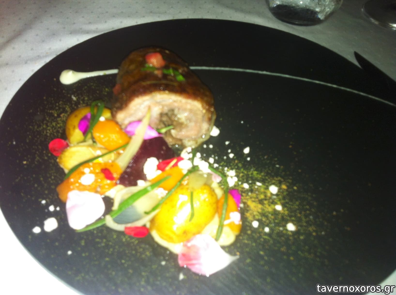 Degustation menu των 85€, πιάτο 9/13: αρνίσιο φιλέτο με λαχανικά