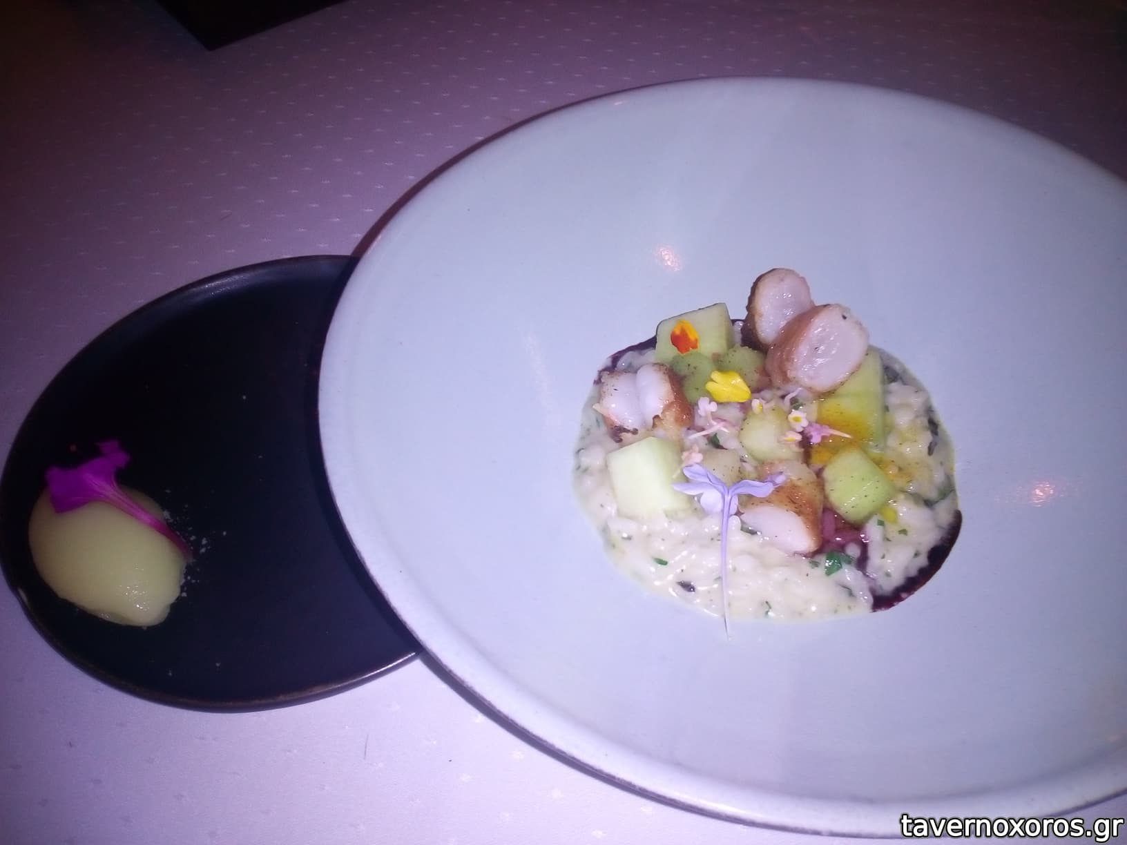 Degustation menu των 85€, πιάτο 7/13: ριζότο με γαρίδες και πεπόνι