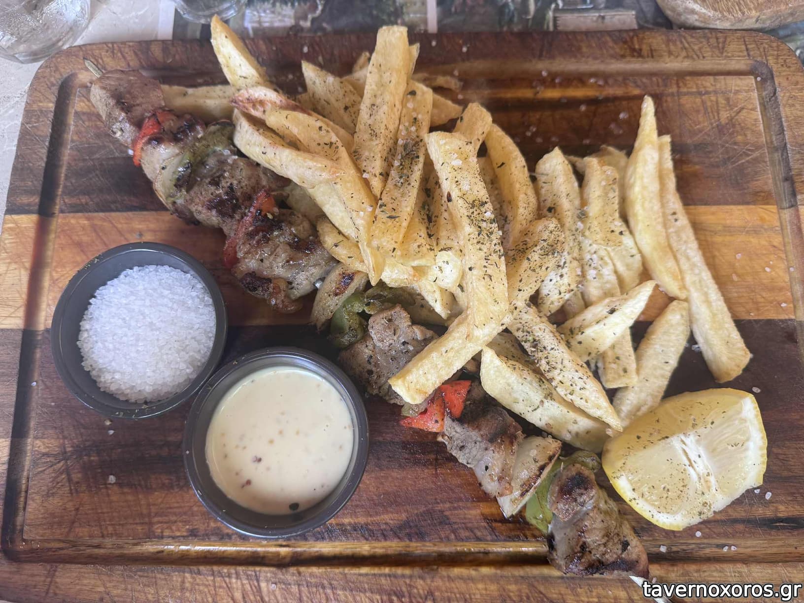 Χοιρινό κοντοσούβλι (καλό, το κουπάκι με τόσο χοντρό αλάτι δεν κατάλαβα σε τι χρησίμευε)