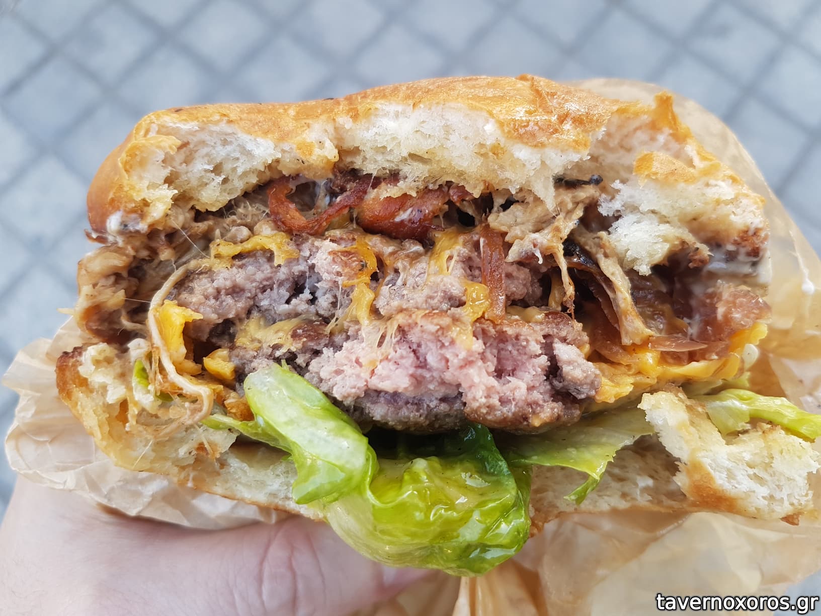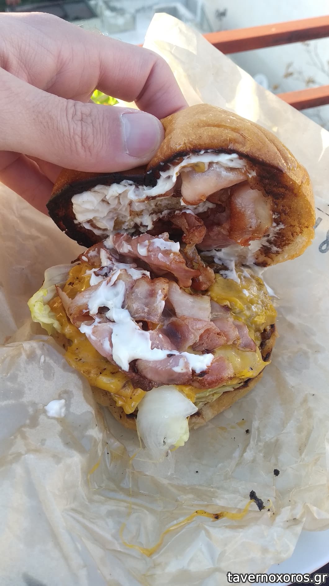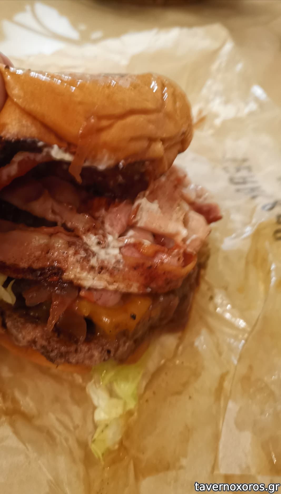Bacon cheeseburger (από κάτω κρύβονται 2 burger)