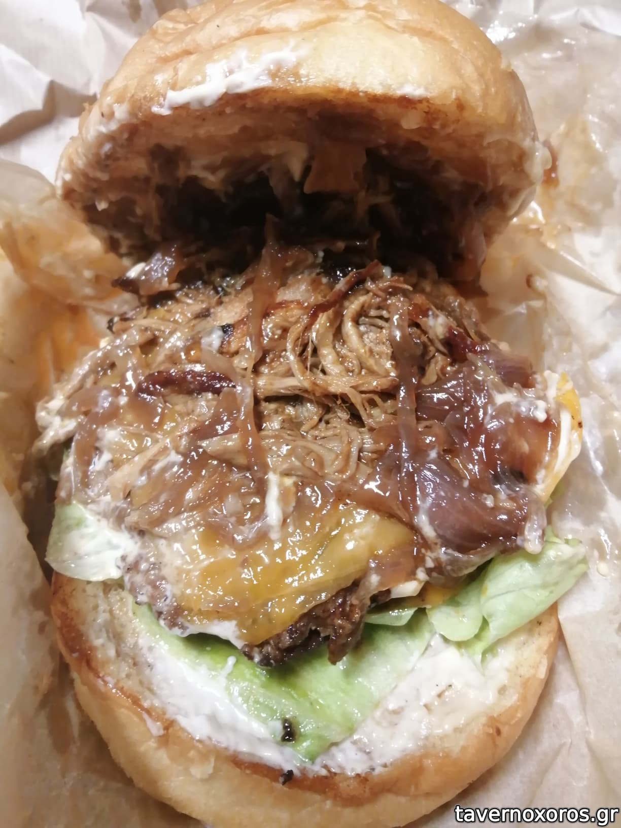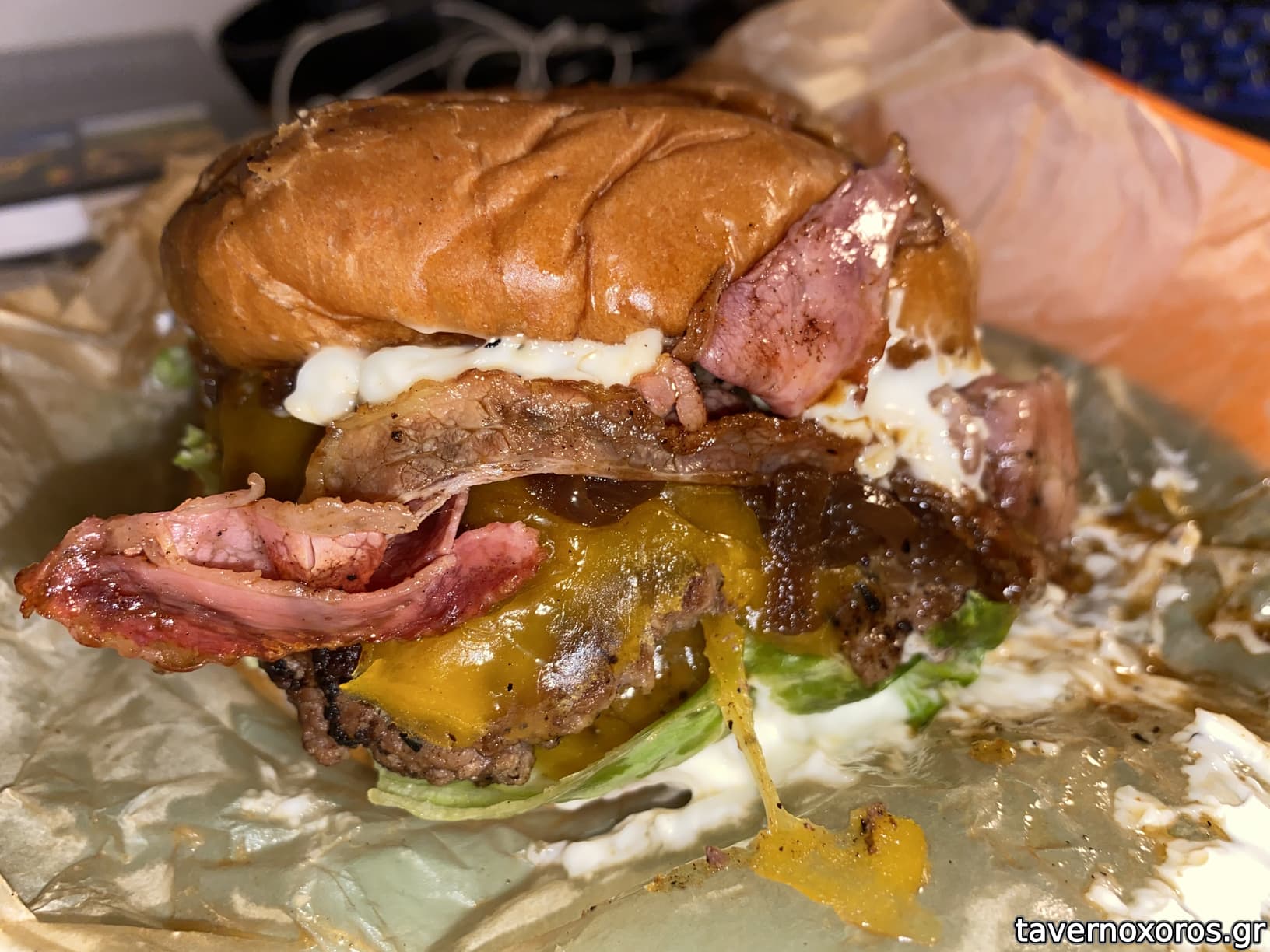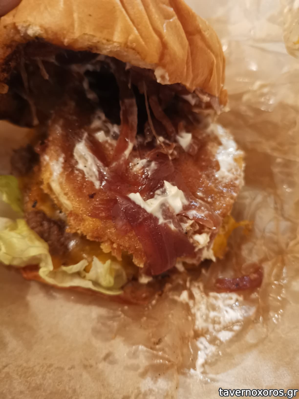 Bacon cheeseburger (από κάτω κρύβονται 2 burger)