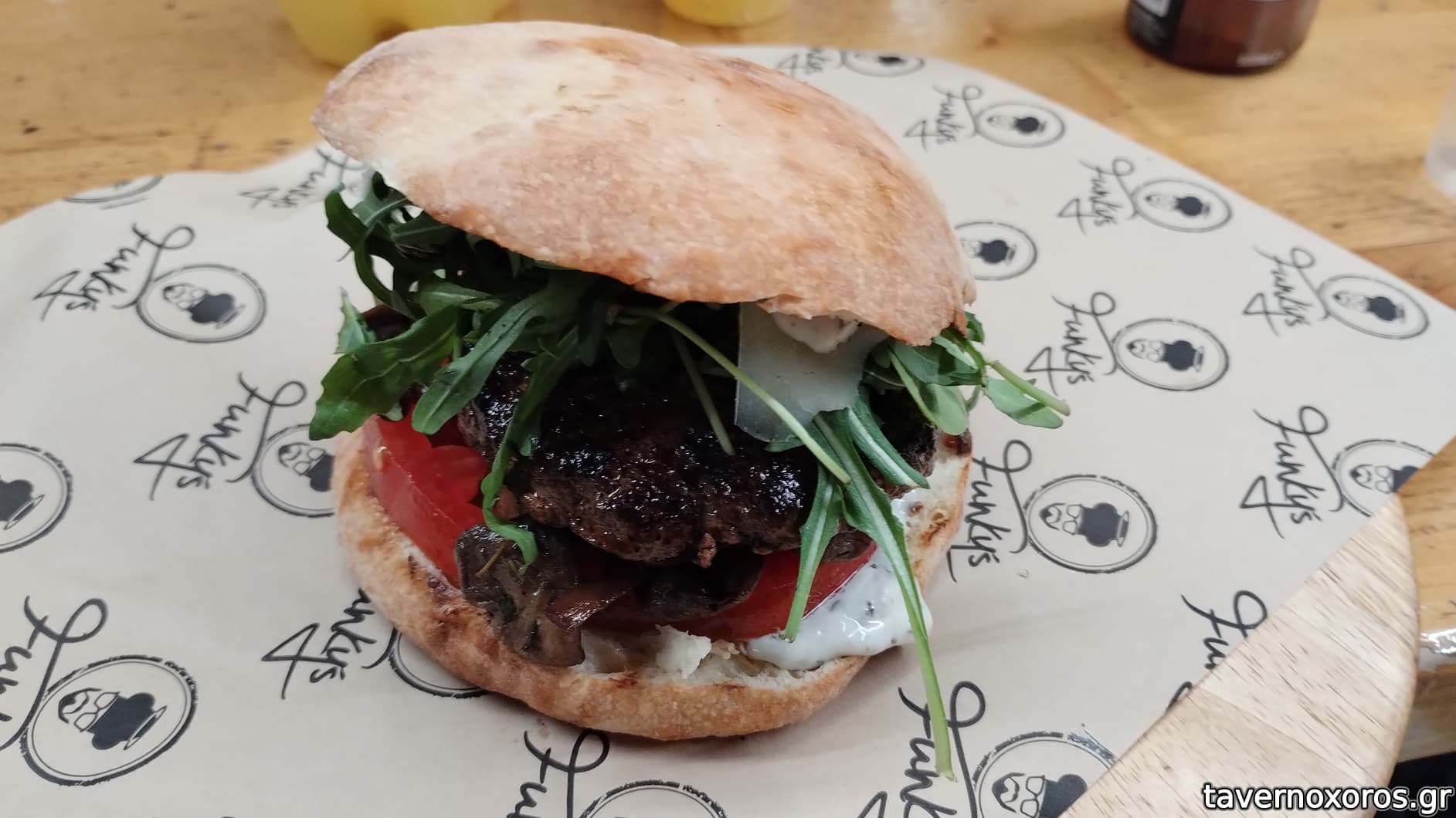 Truffle burger (με ρώτησαν αν το θέλω μέτριο ή καλοψημένο. Μέτριο και ήταν καλό)