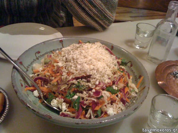 Οι ανθοί γεμιστοί αν δεν ήταν κρύοι απο το ψυγείο θα ήταν μάλλον καλοί δυο φορές που δοκίμασα και δυστυχώς αυτό μπορεί να συμβεί και στις πατάτες φούρνου και στους κεφτέδες με σάλτσα. Το κουνέλι και ο κόκορας μέτρια πράγματα(φαινόταν καλομαγειρεμένα αλλά το κρέας όχι και τόσο φρέσκο). Στα θετικά όμως η φάβα (απο τις πιο νόστιμες που έχω δοκιμάσει), το απάκι(καπνιστά χοιρινά κομμάτια με ξύδι), τα λουκανικάκια και η στάκα με αυγά.