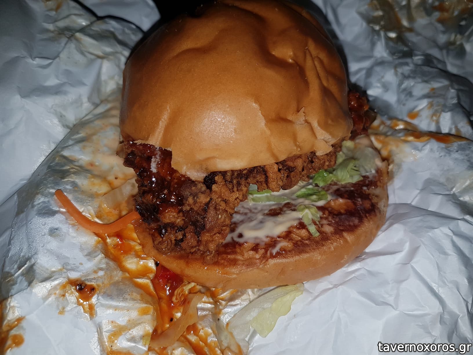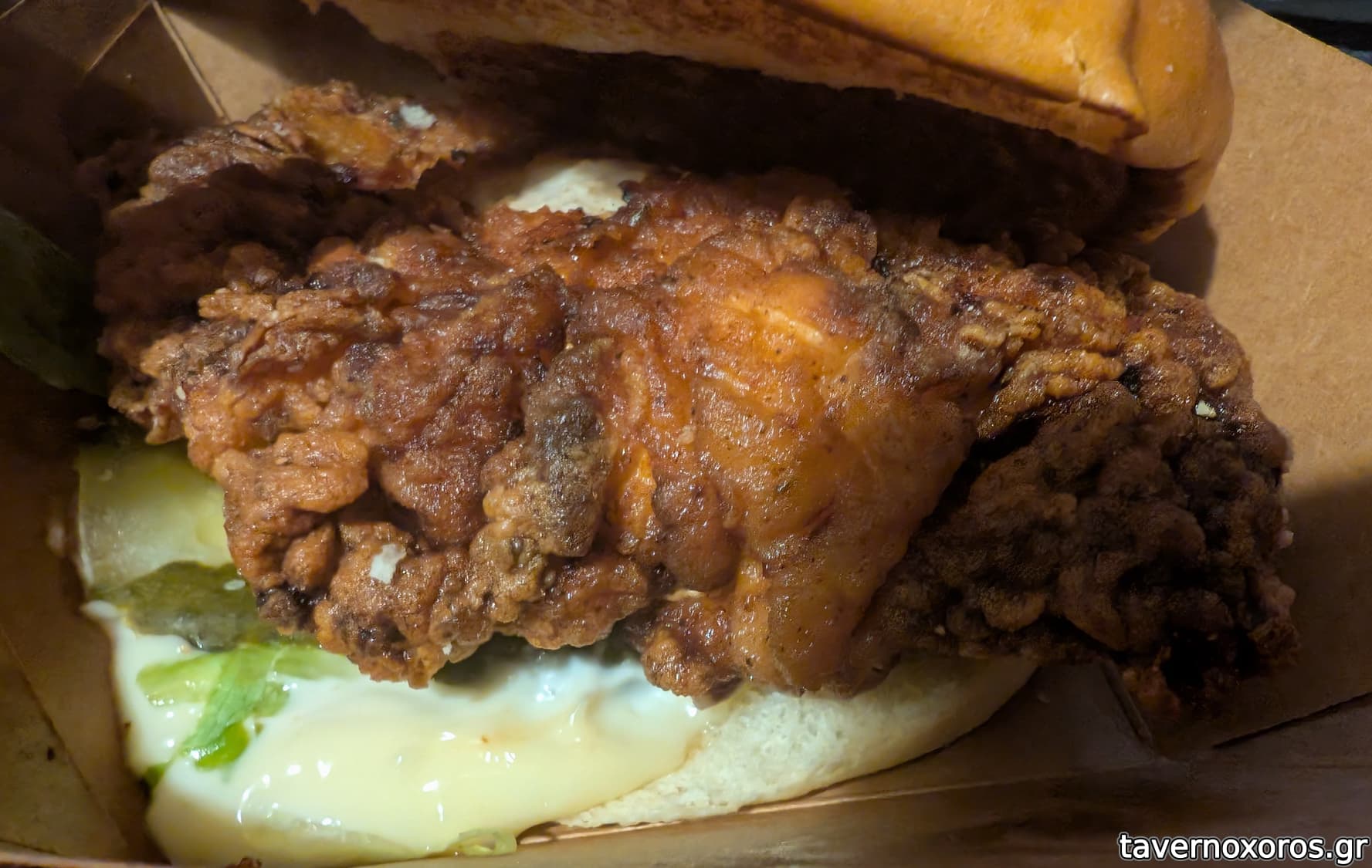 Fried Chicken burger (απαράδεκτο τηγάνισμα, ψωμάκι αφρός)