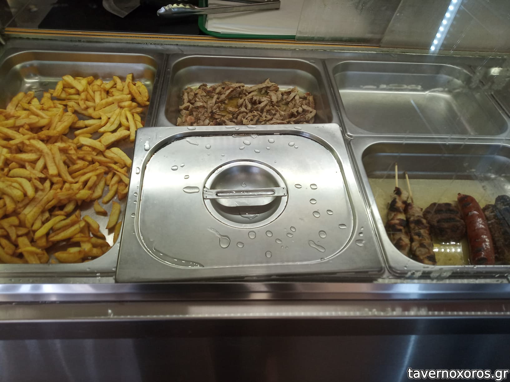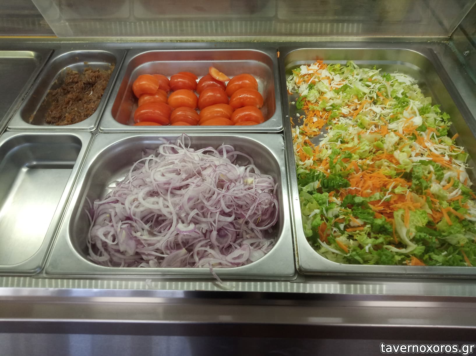 Πέρα από τα κλασικά της ώρας είχε κοψίδι χοιρινό και κοψίδι κοτόπουλο, σε μπρεζαρισμένη μορφή. Δοκιμή πίτα (σα κυπριακή) με Κοψίδι χοιρινό. Σαλάτα πάπρικα, έβαλα και λάχανο και καραμελωμένα κρεμμύδια. Οκ, καλό για αρχή. 3,