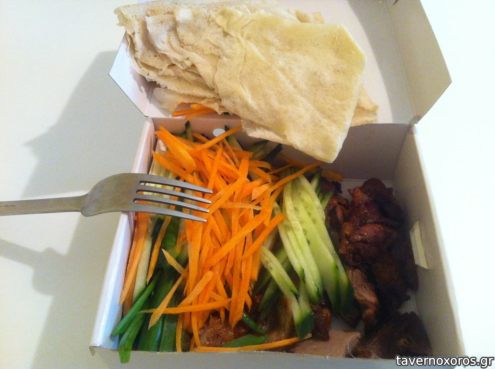 Noodles με κοτόπουλο λίγο λαπαδιασμένα μού φάνηκαν και είχε πέσει πολύ αλάτι για τα γούστα μου. Δοκίμασα και την τηγανιτή μπανάνα, που δεν έχω ξαναφάει και δε μ'