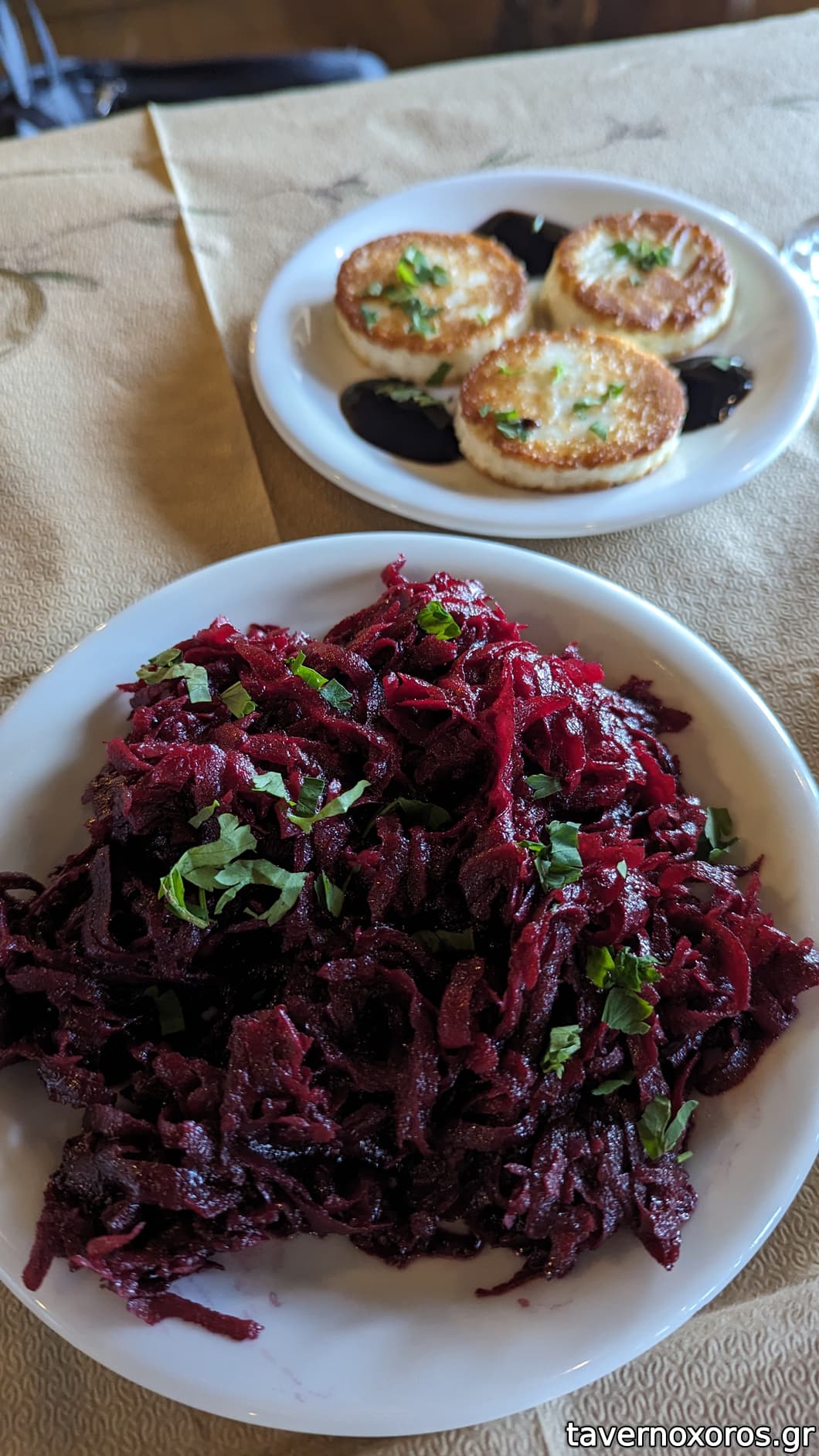 Παντζάρι ωμό τριμμένο και πίσω φλωρινέλα σαγανάκι