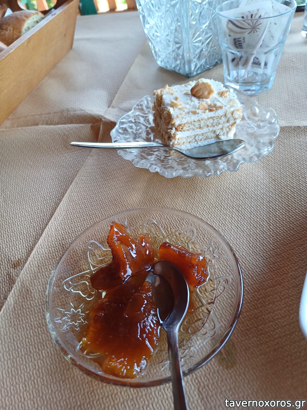 -Γλυκακια κερασμενα, φτιαγμενα απ τους ιδιους. Κατι σαν πορτοκαλοπιτα, με μια μους σοκολατας απο πανω. Μας ειπαν πως ειναι νηστισιμο! οχι οτι μας ενοιζε ιδιαιτερα.. Δροσεροτατο, παρα πολυ νοστιμο, και η καθε μπουκια σου δινε μια πληθωρα γευσεων και μυρωδιων.