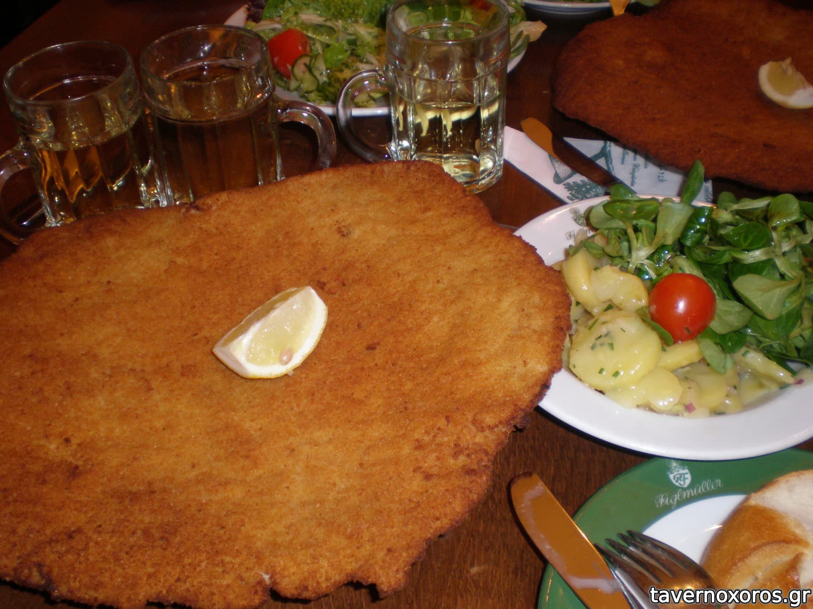 Για ένα γιγαντιαίο σνίτσελ μαζί με σπέσιαλ πατατοσαλάτα ή ατομική ανάμεικτη σαλάτα(Kleiner gemischter Salat)