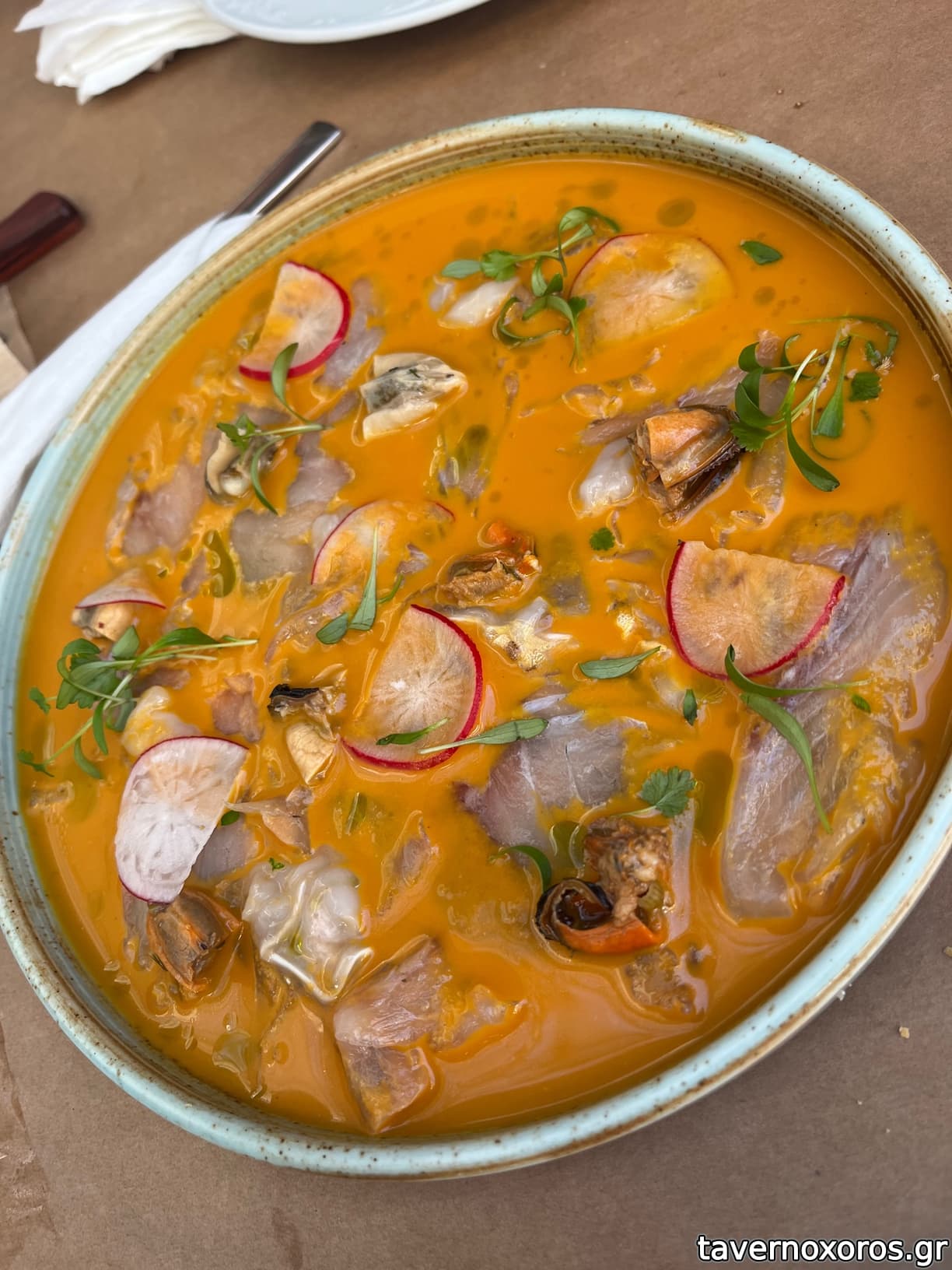 Λαυράκι tiradito, με μαριναρισμένα κυδώνια και πιπεριά ajo amarillo, το κορυφαίο του πιάτο, αρκετά καυτερό που έβγαζε μία απίστευτη δροσιά και εξαιρετικά αρώματα