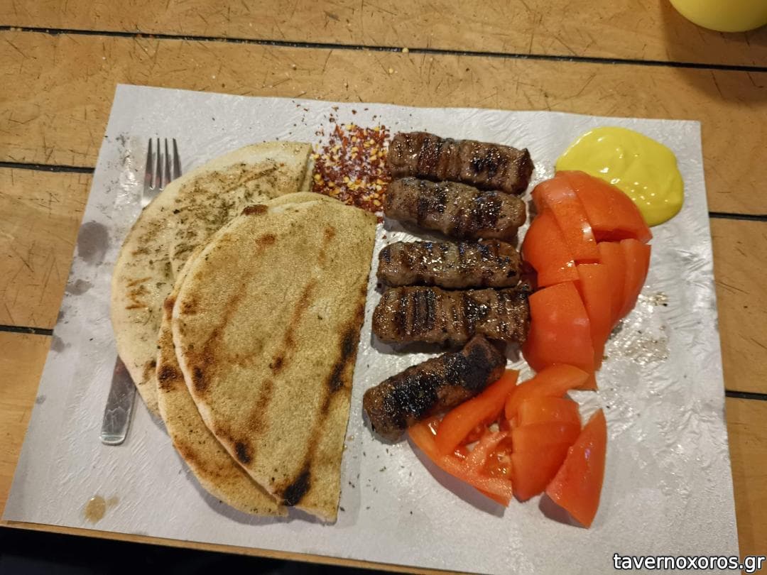 Φάγαμε σουτζουκάκια και ψητό κεφαλοτύρι. Νόστιμα αλλά λόγω φόρτου εργασίας φαίνονταν το διαφορετικό ψήσιμο σε κάποια τεμάχια. Μερικά είχαν μείνει λίγο παραπάνω στη σχάρα και δεν ήταν όσο ζουμερά όσα τα υπόλοιπα. Το κεφαλοτύρι, τίποτα το ιδιαίτερο, ένα απλό συνοδευτικό για το κρέας και τις ντομάτες που σου φέρνουν.