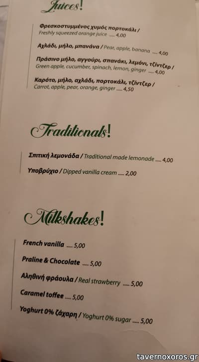 Το εσωτερικό του (άκαπνο) είναι πολύ μικρό, λίγο μεγαλύτερος ο εξωτερικός χώρος (περιφραγμένος με τζάμι όπου καπνίζουν κανονικά)