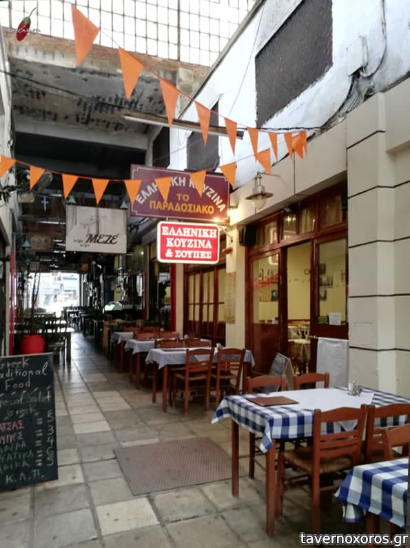 ξεναγηση στα φαγητα της βιτρινας, ψωμι απ' το ξυλινο συρταρι, παπουδες στις γωνιες τους και ολα αυτα στην καταλληλη πολυκαιρισμενη στοα.