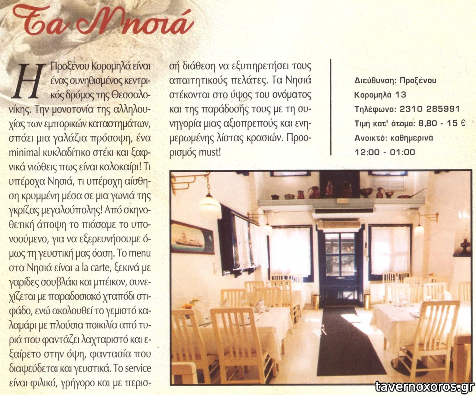 *Φαγητό: η μελιτζάνα ήταν καταπληκτική με καπνιστή μυρωδιά και έλιωνε στο στόμα! Το χταπόδι πολύ καλό, όπως και ο ταραμάς που ήταν χειροποίητος. Αποκορύφωμα για μένα ήταν η γαριδομακαρονάδα!! Το ζυμαρικό ήταν η απλή σπαγγέτι αλλά τέλειο βράσιμο, οι γαρίδες ήταν φρεσκότατες και στην σάλτσα είχε λίγες ψιλοκομμένες κόκκινες πιπεριές και μάραθο που έδινε super γεύση και μυρωδιά στο πιάτο! όλα τα φαγητά πάντως έδειχναν ότι έχουν γίνει με μεράκι χωρίς υπερβολές και πολλά μπλα μπλα. Το χύμα λευκό κρασί τους ήταν κ αυτό πολύ καλό!