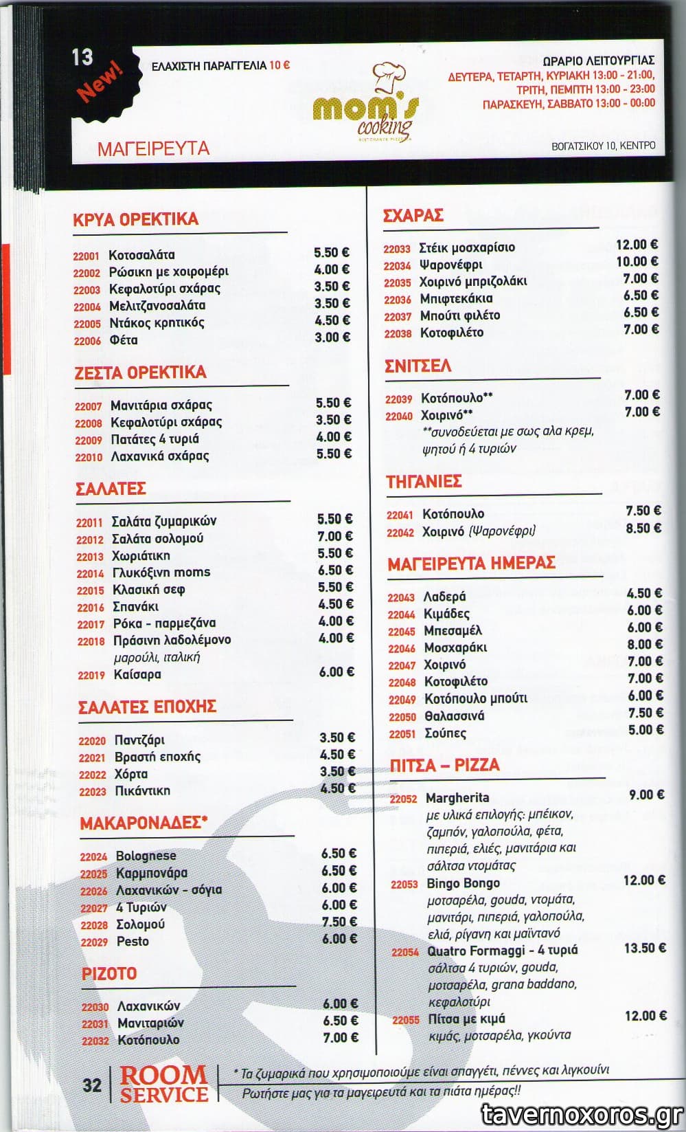 Κατάλογος υπηρεσίας Room Service Δεκεμβρίου 2010
