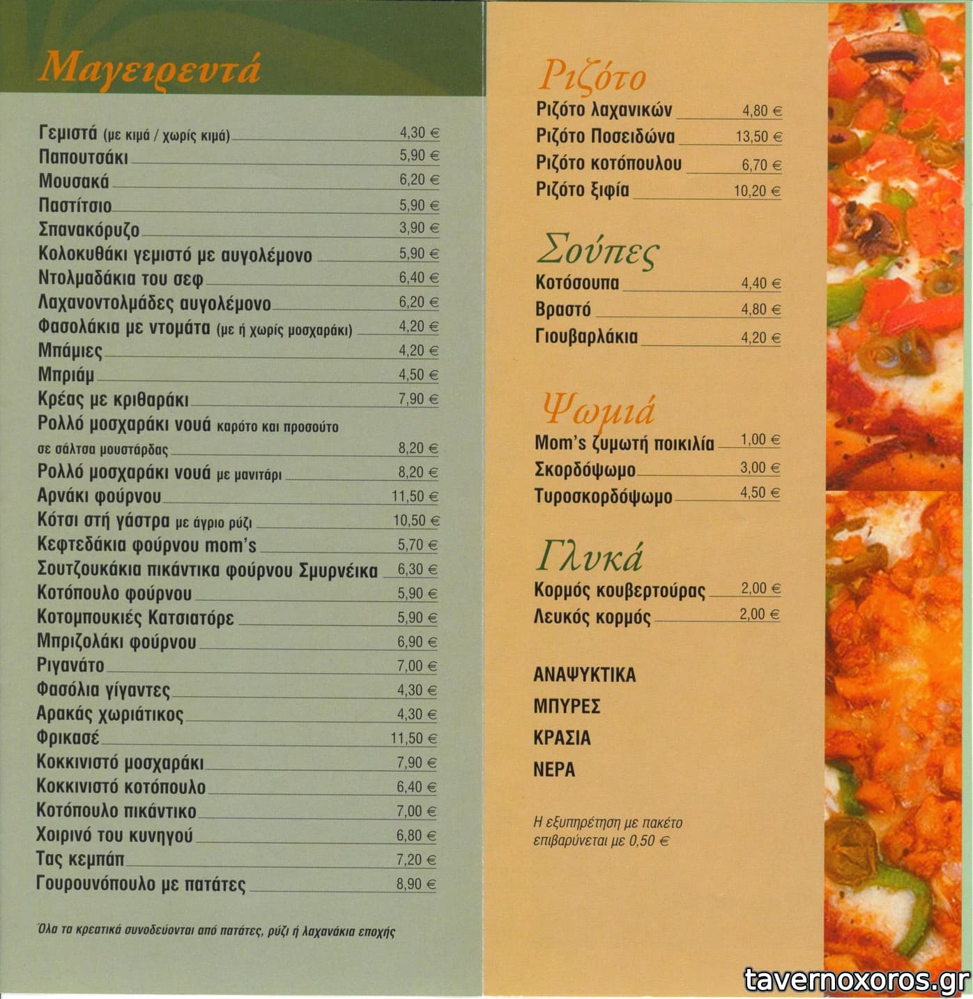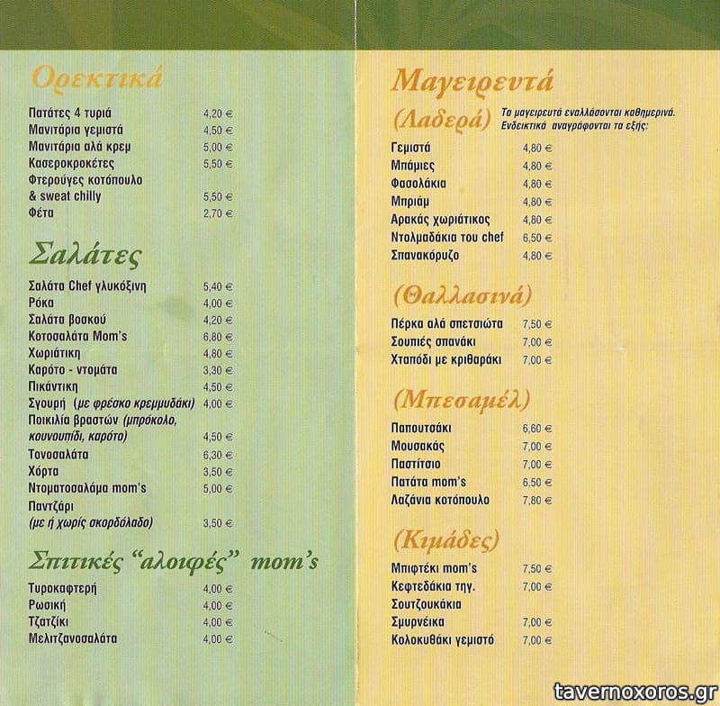 Πίτσες μακαρονάδες στο συγκεκριμένο δεν λένε πολύ, αλλά από τα μαγειρευτά του φαγητά αρκετά είναι νόστιμα και όχι πολυ βαριά για το στομάχι. Στο τέλος ο κορμός είναι ένα + για το μαγαζί.