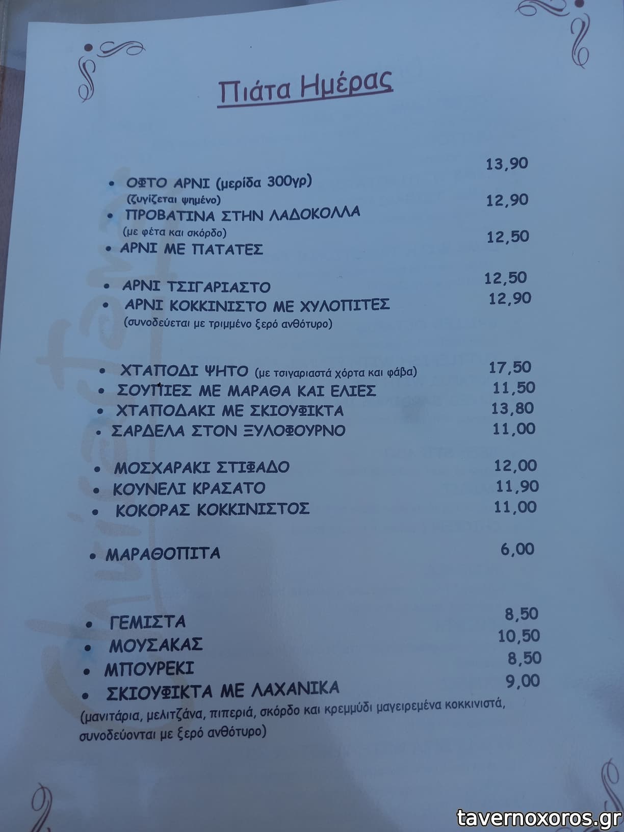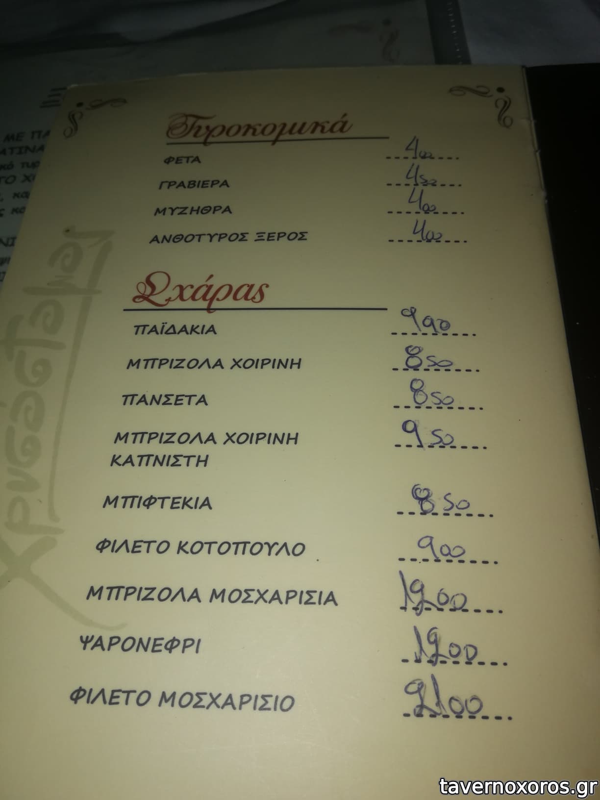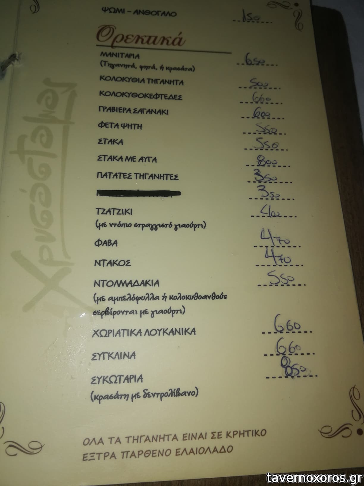 Παρέα 8 ατόμων, δοκιμάσαμε στάκα (καλή), μυζηθροκαλιτσούνια (καλά), κολοκυθοανθούς (οκ), τυροζούλι στη σχάρα (οκ), σαλάτα Χρυσόστομος (οκ) και από κρέας αρνί οφτό, ψητό,