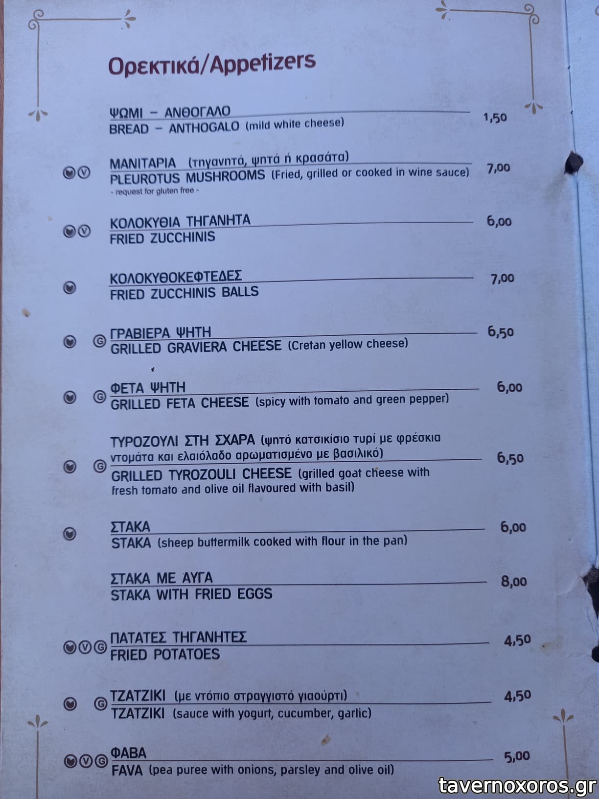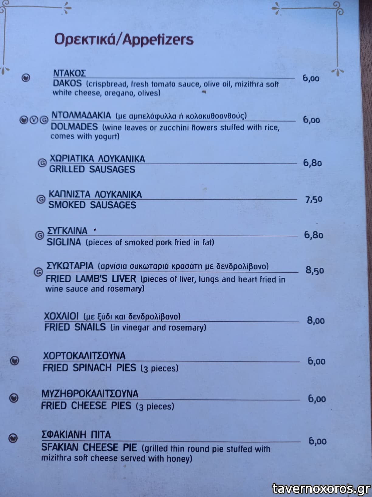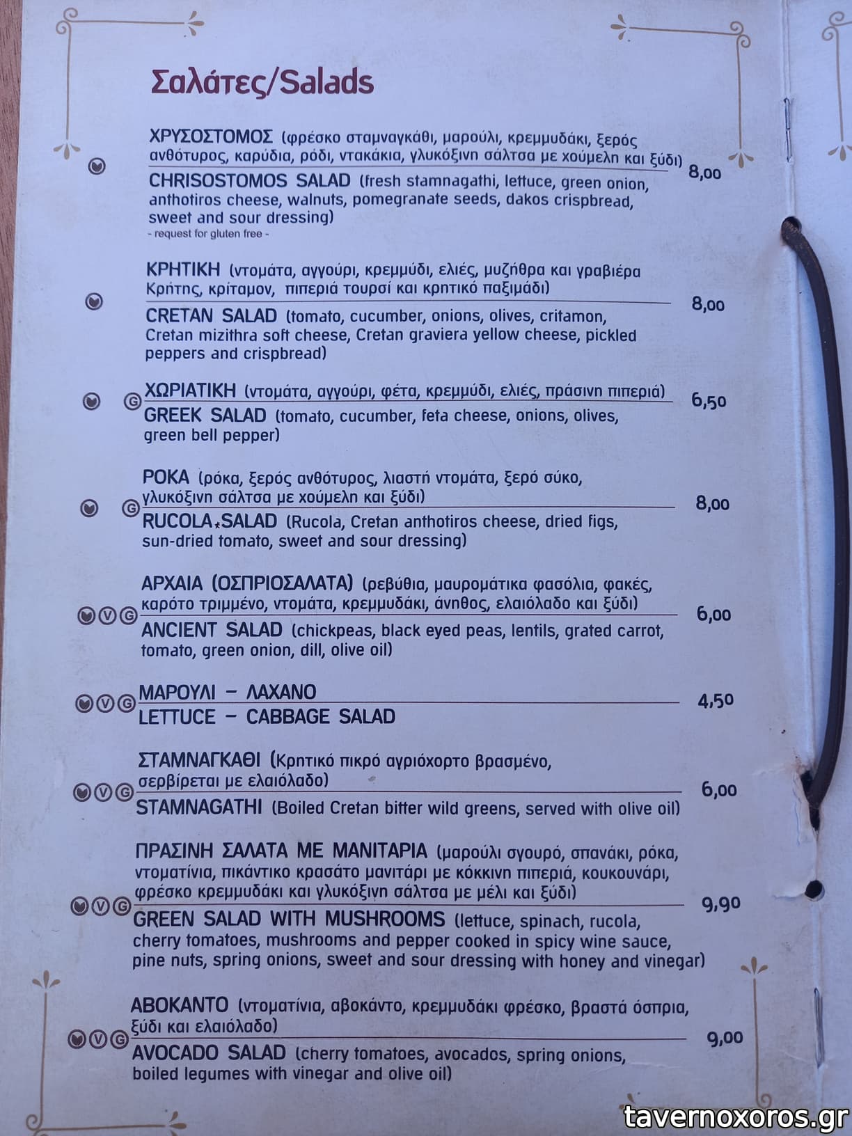 Παρέα 8 ατόμων, δοκιμάσαμε στάκα (καλή), μυζηθροκαλιτσούνια (καλά), κολοκυθοανθούς (οκ), τυροζούλι στη σχάρα (οκ), σαλάτα Χρυσόστομος (οκ) και από κρέας αρνί οφτό, ψητό,