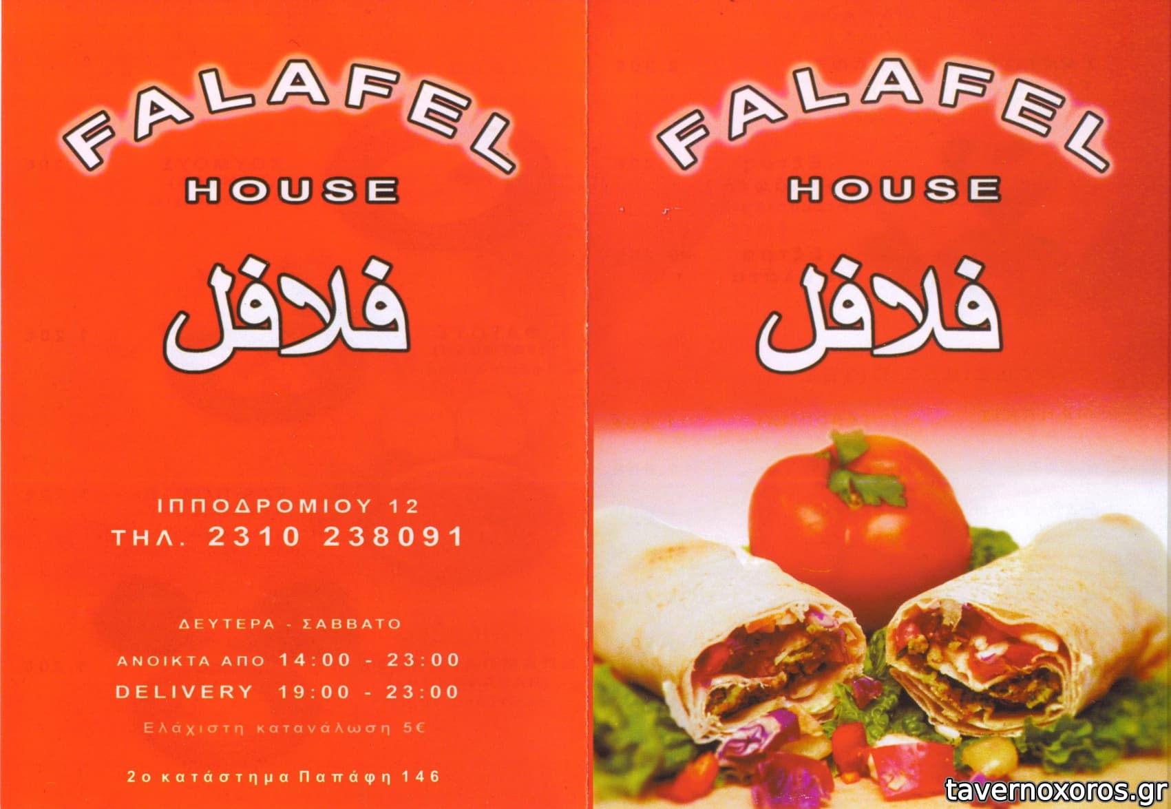 μάλλον delivery έχει, γιατί είχε απέξω παρκαρισμένο μηχανάκι με ενα τυπωμένο χαρτί Falafel House και τον αριθμό.