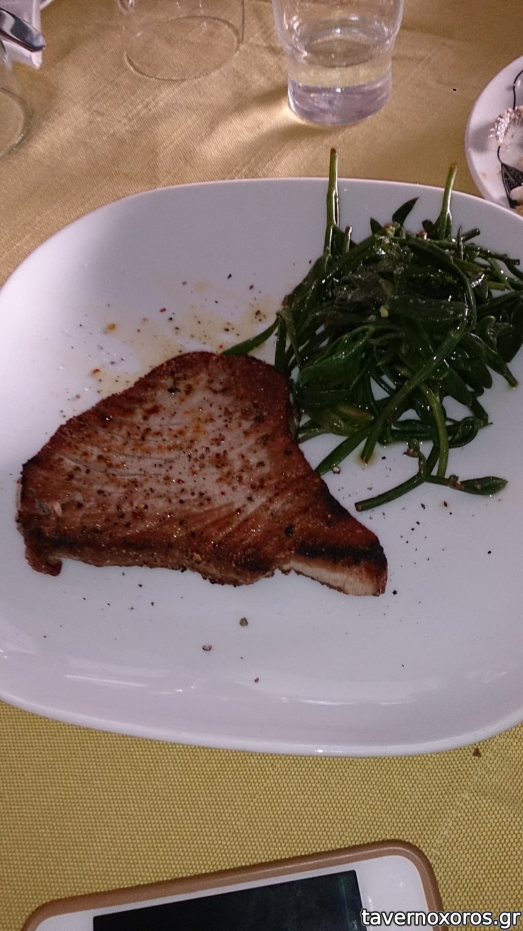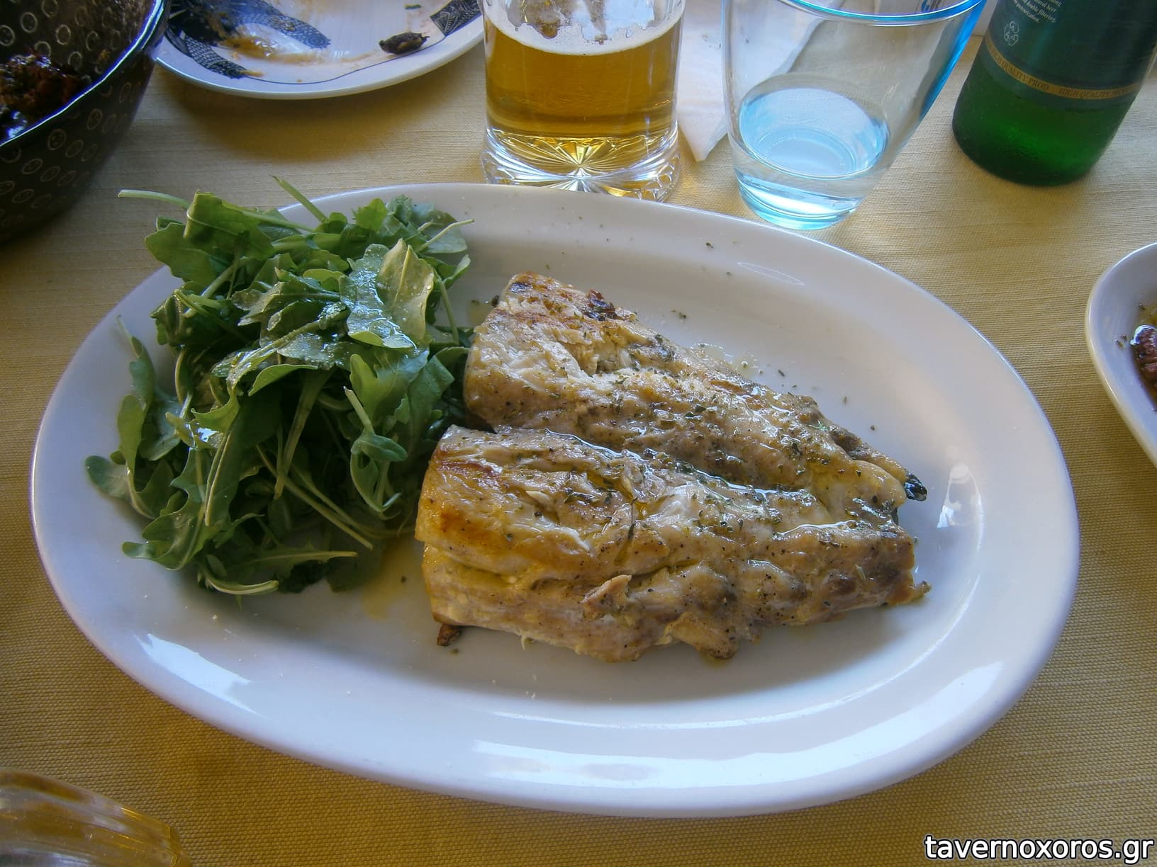 Σαλάτα με baby σπανάκι (της έλειπε λίγη παραπάνω σως) και για κυρίως χοιρινά φιλετάκια και γεμιστό κοτόπουλο με τυρί. Ολα ήταν όμορφα και τα ευχαριστηθήκαμε. Λογαριασμός 33 με γλυκό και απόδειξη χωρίς ποτό.