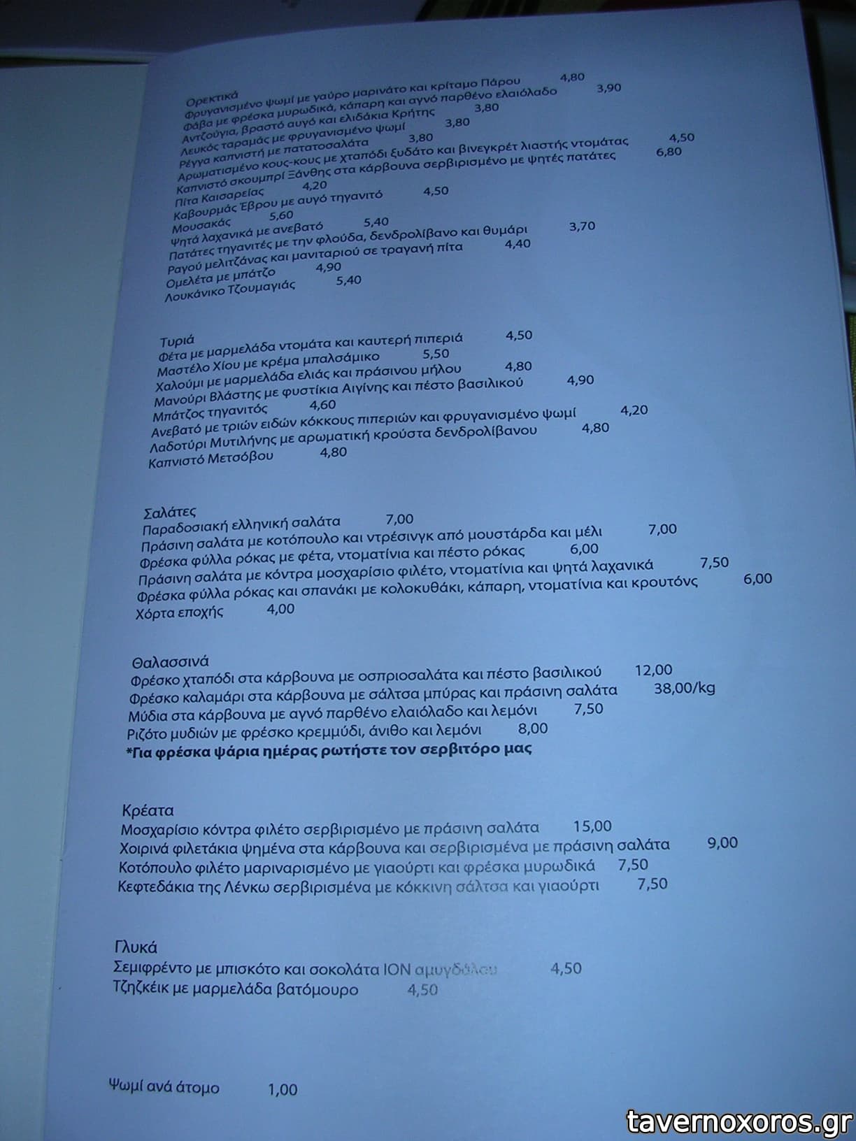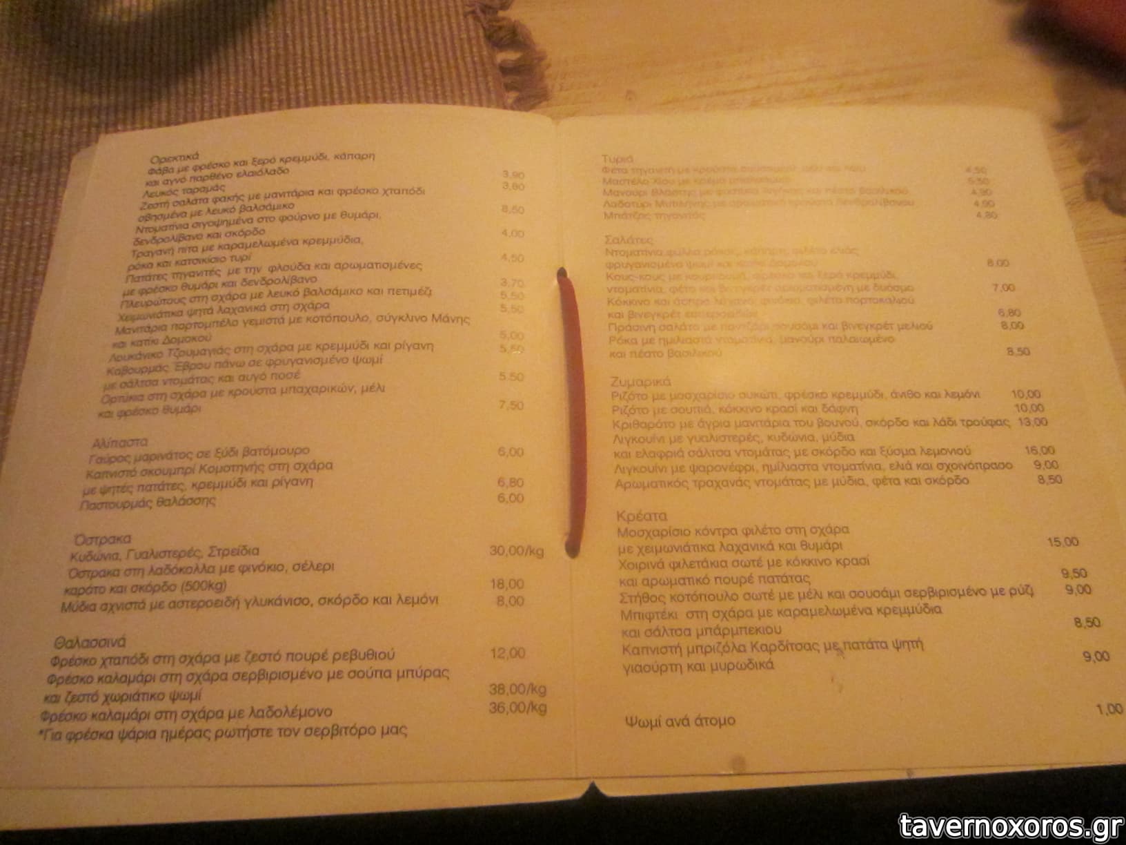 Ο κατάλογος σχετικά μικρός, με έμφαση στους μεζέδες.