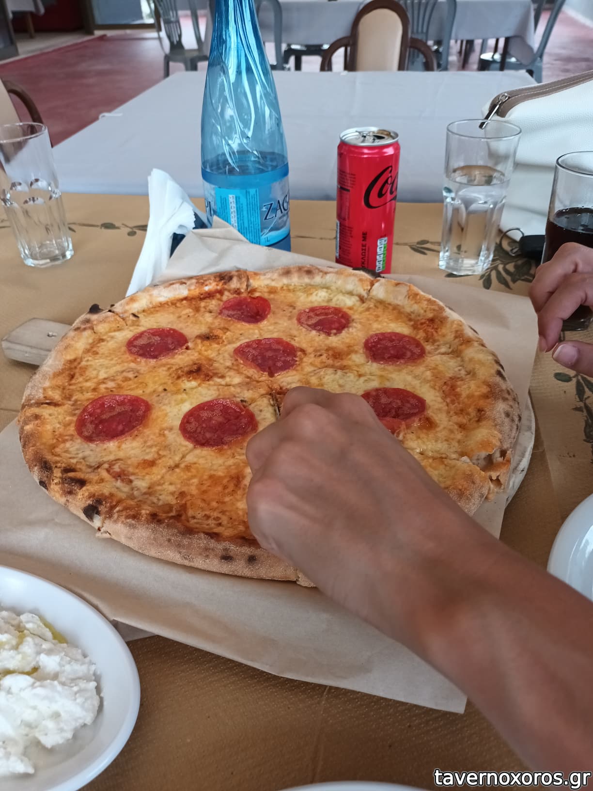 Βραδινή επίσκεψη 4 ατόμων. Δοκιμάστηκε κότσι που ήταν το πιάτο ημέρας και ήταν πολύ καλό, σουβλάκι χοιρινό συμπαθητικό, πίτσα σπέσιαλ επίσης συμπαθητική, καυτερή πιπεριά νόστιμη. Πίτσα δεν έχω βρει καλύτερη στην ευρύτερη περιοχή νομίζω. Αυτά με 2 ρετσίνες στα 46€, μια χαρά. Με ζόρισαν λίγο τα έντονα φώτα νοσοκομείου παρ' όλο που καθίσαμε και μακριά τους όπως επίσης με ζόρισε πάρα πολύ η κάκιστης κατ' εμέ ποιότητας μουσική. Μια χαρά για την περιοχή, θα ξαναπήγαινα, ο μόνος μου δισταγμός πραγματικά θα ήταν η σκέψη ότι θα υποστώ αυτή τη μουσική που δεν αντέχω ούτε δευτερόλεπτο. Περί ορέξεως