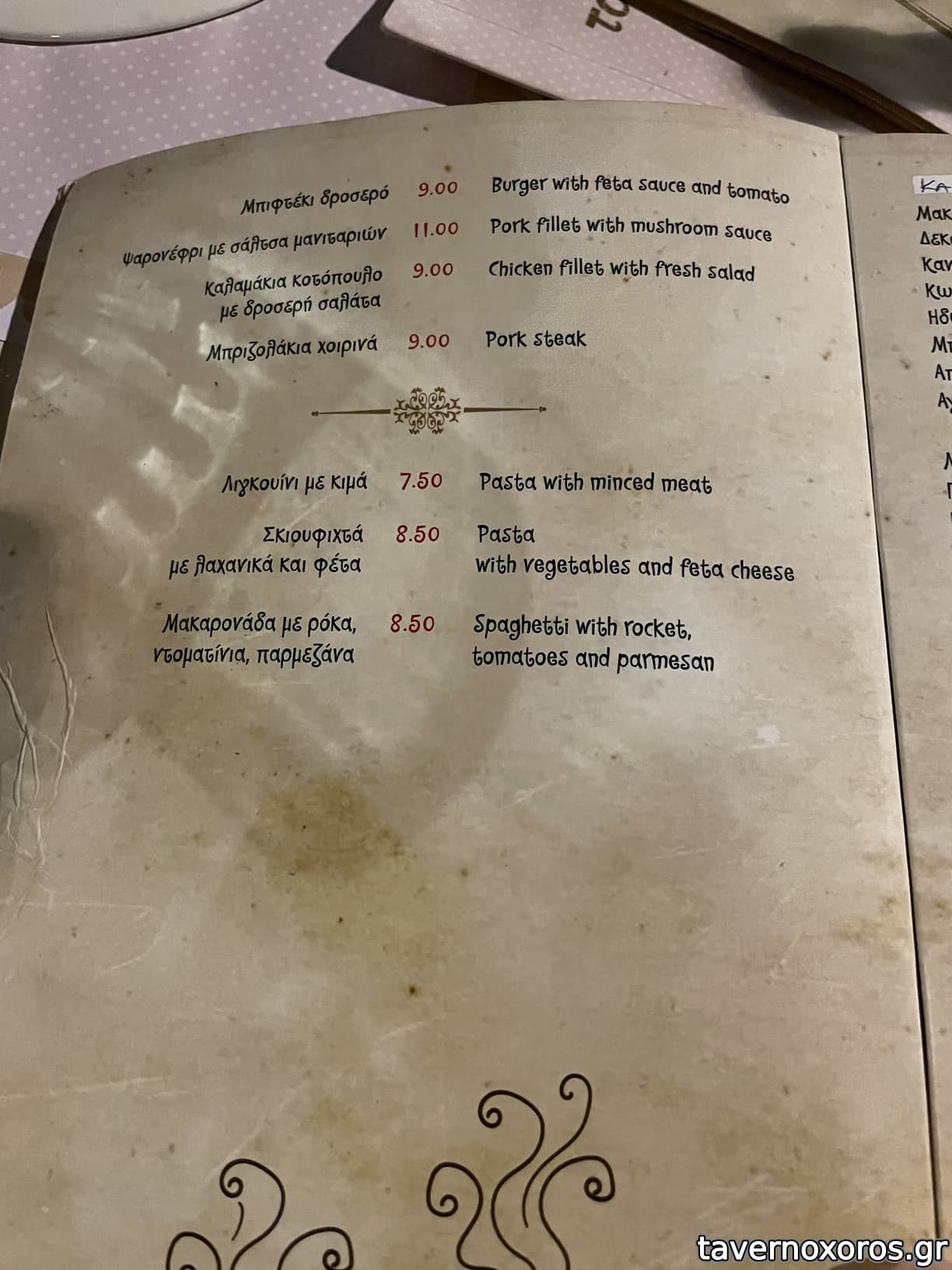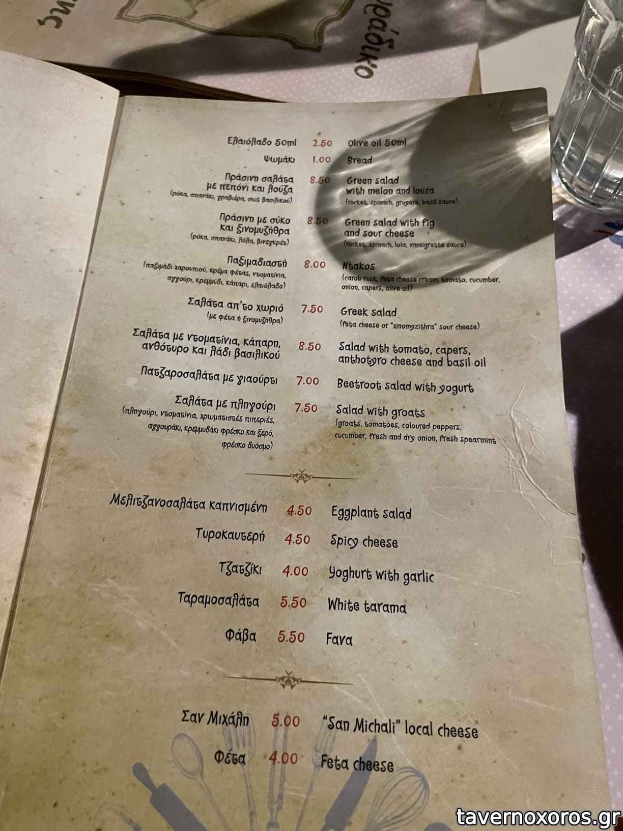 | Λέξεις κλειδιά | #σαν μιχάλη, #φάβα, #μόστρα, #χταπόδι, #γαρίδες, #μύδια, #γαύρος, #σαρδέλα, #αστακομακαρονάδα, #ντοματοκεφτέδες, #ρολάκια μελιτζάνας, #μανιτάρια, #αυγά, #σουτζούκι, #κολοκυθάκια, #κρεμμυδόπιτα, #κεφτεδάκια, #κοτόπουλο, #πανσέτα, #μπιφτέκι, #ψαρονέφρι, #σουβλάκια, #χοιρινή, #αρνάκι στο φούρνο, #γιουβέτσι, #κοκκινιστό, #συκώτι, #ζυμαρικά, #σκιουφιχτά, #μακαρονάδες |