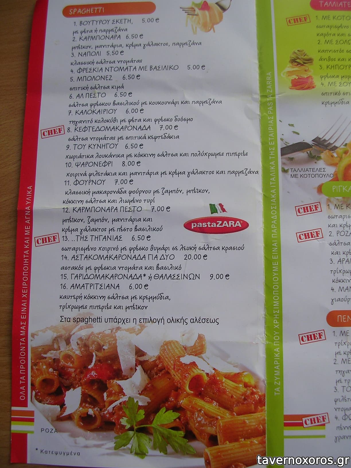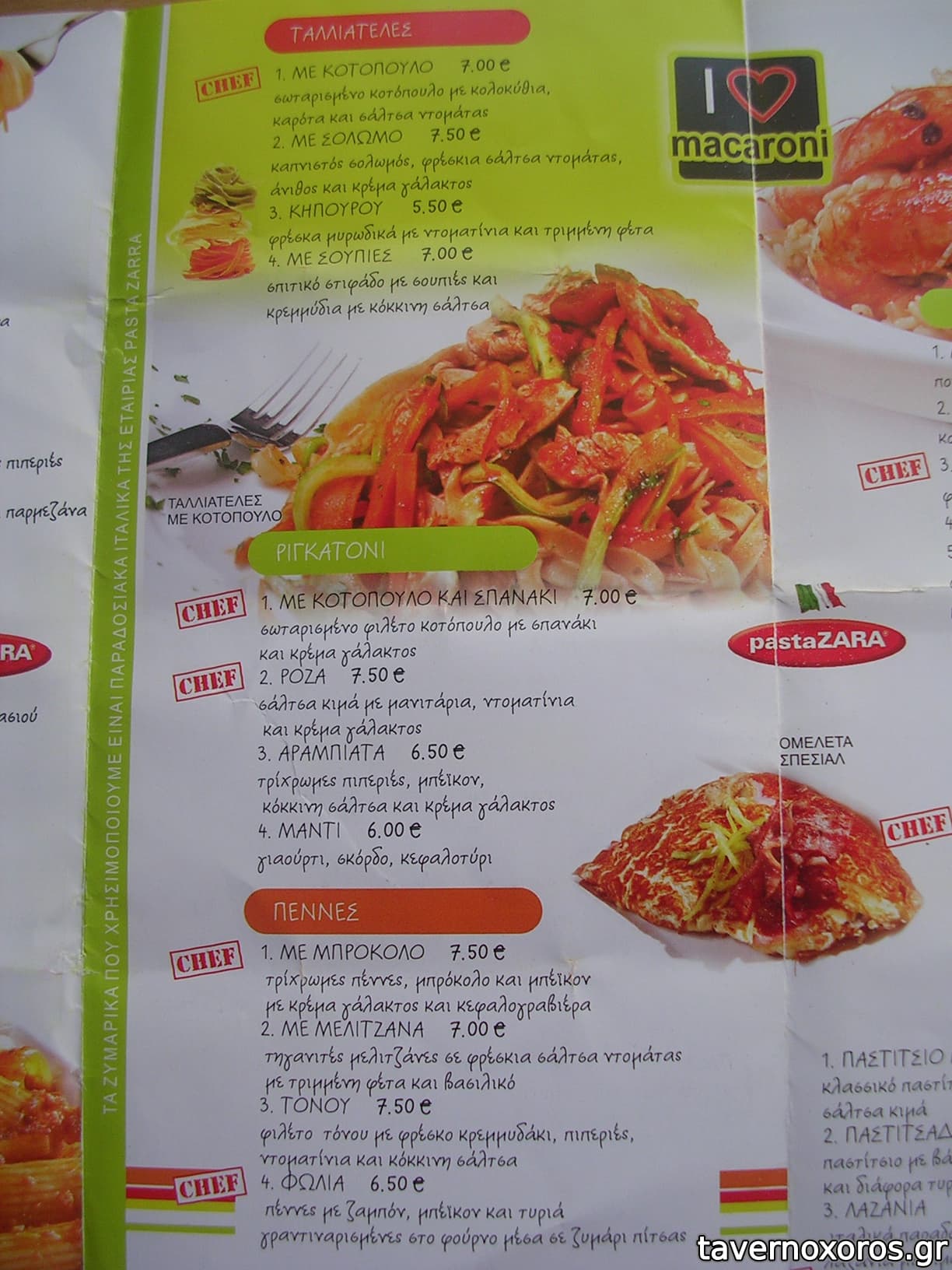 Ντελιβεράδικο με 28 διαφορετικές μακαρονάδες, μερικά ριζότα, ομελέτες, λίγα μαγειρευτά και σαλάτες. Τα μακαρόνια είναι pasta ZARA. Δεν έχει να κάτσεις παρά μόνο 2 μικρά εξωτερικά stands.