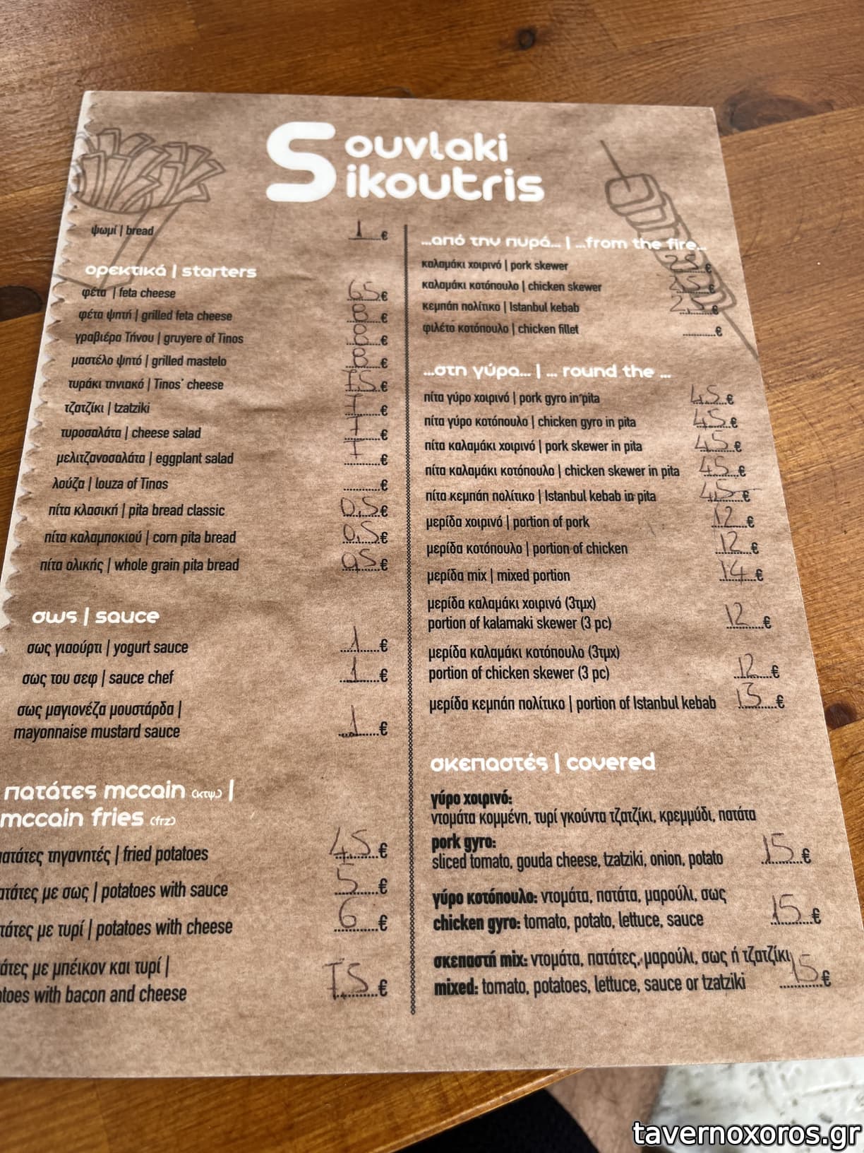 | Λέξεις κλειδιά | Συκουτρής, #πεζόδρομος, #τυράκι τηνιακό, #λούζα, #μαστέλο, #σάντουιτς, #σουβλάκια, #σουτζουκάκια, #κοτόπουλο |