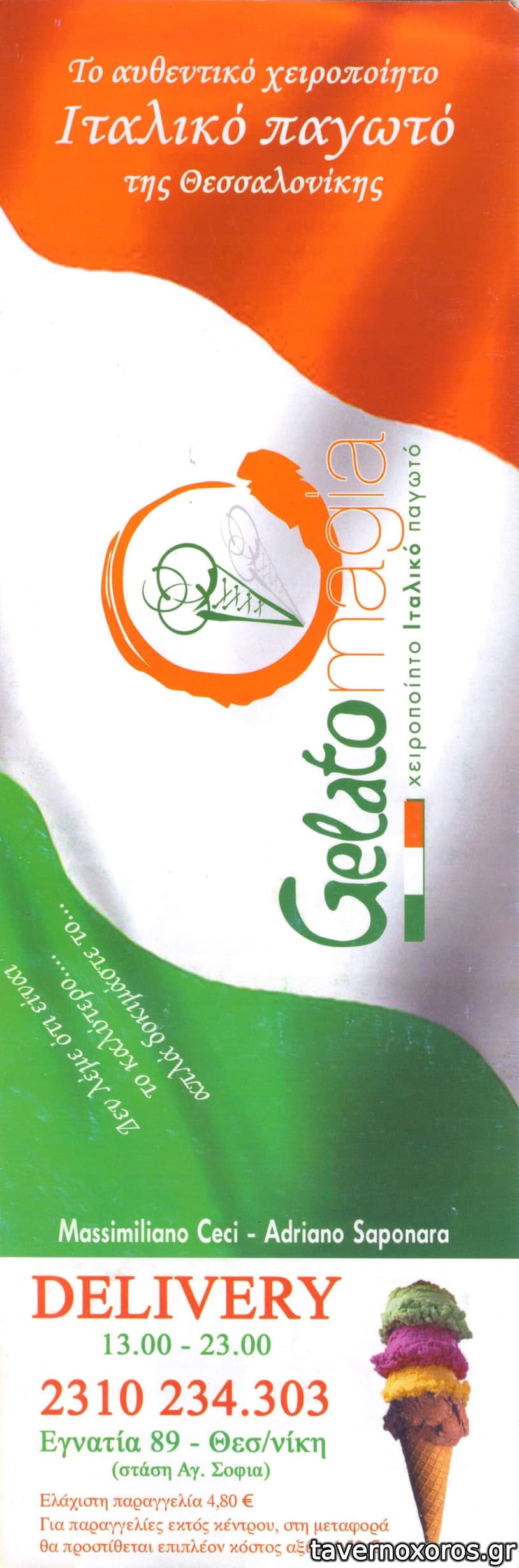 Χειροποίητο ιταλικό παγωτό. Ιδιοκτήτες οι Adriano Saponara και Massimiliano Ceci.