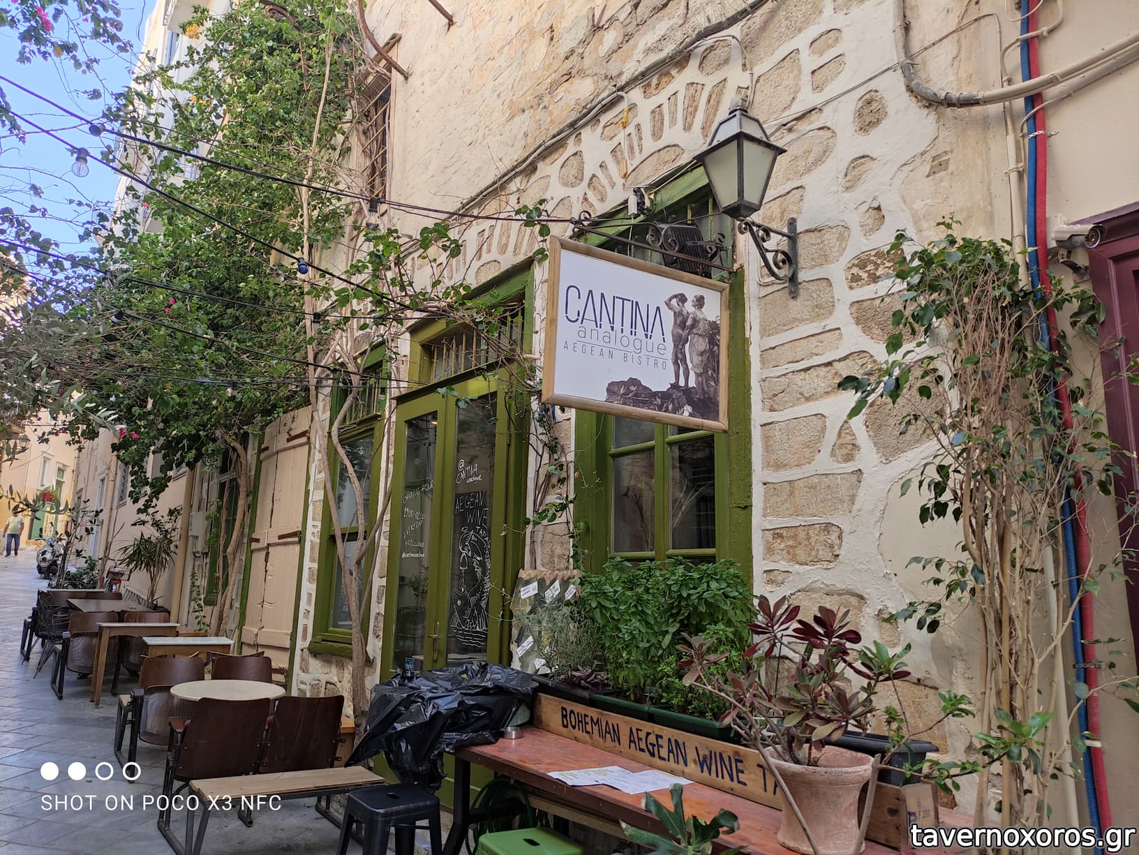 Εξωτερικά είναι επίσης ευχάριστα, σε ένα γραφικό σοκάκι της Ερμούπολης.