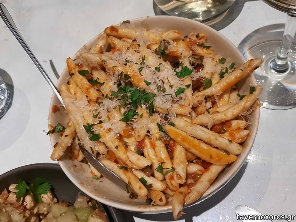 - Σιουφιχτά με κιμά από Συριανό λουκάνικο και γραβιέρα Νάξου. Πολύ καλό.