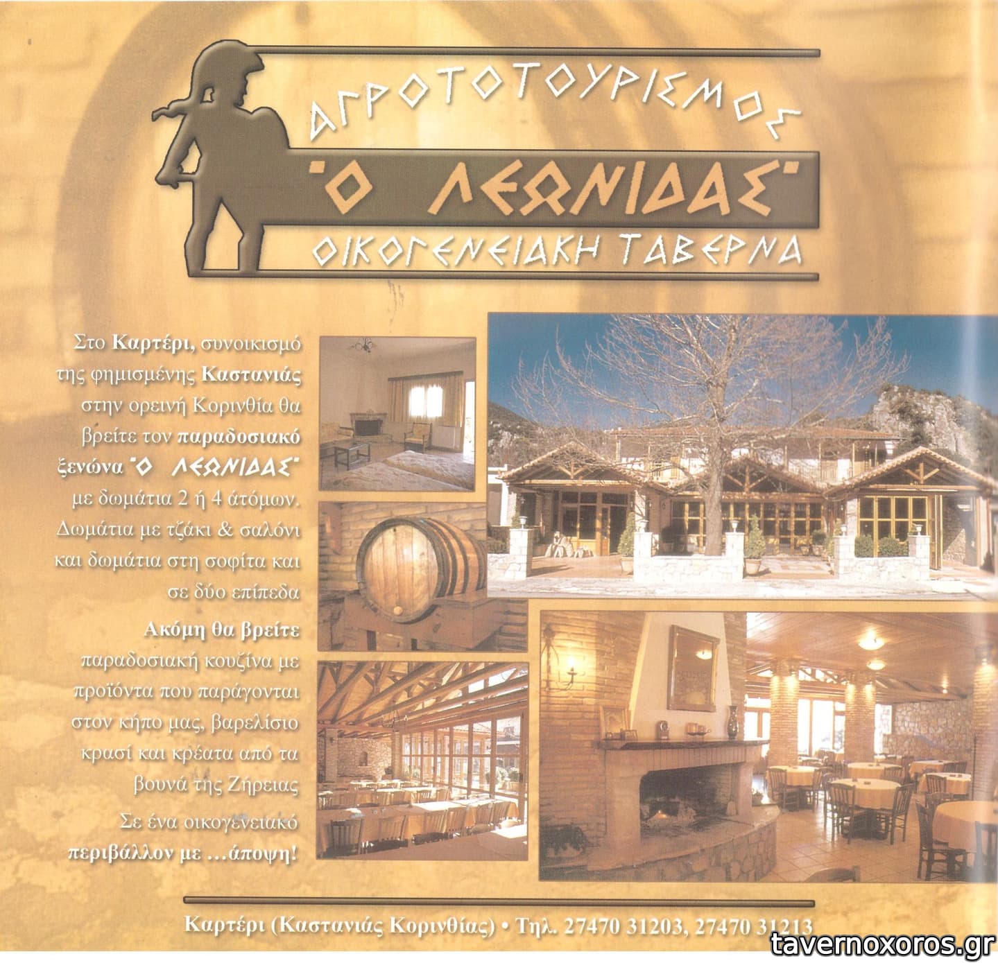 Ο Λεωνίδας φημίζεται για τις σούβλες του. Τα σαββατοκύριακα βάζει 10-12 σούβλες (4-5 γουρνοπούλες, 1-2 αρνιά, 2 κοκορέτσια, κοντοσούβλια κλπ. Είχαν και δικές τους πίτες, τις οποίες δεν δοκιμάσαμε. Τρία άτομα, πήραμε 1½ κιλό γουρουνόπουλο σούβλας, χωριάτικη σαλάτα, πατάτες τηγανητές και κρασάκι χύμα κοκκινέλι. Όλα τέλεια. Συνιστάται.