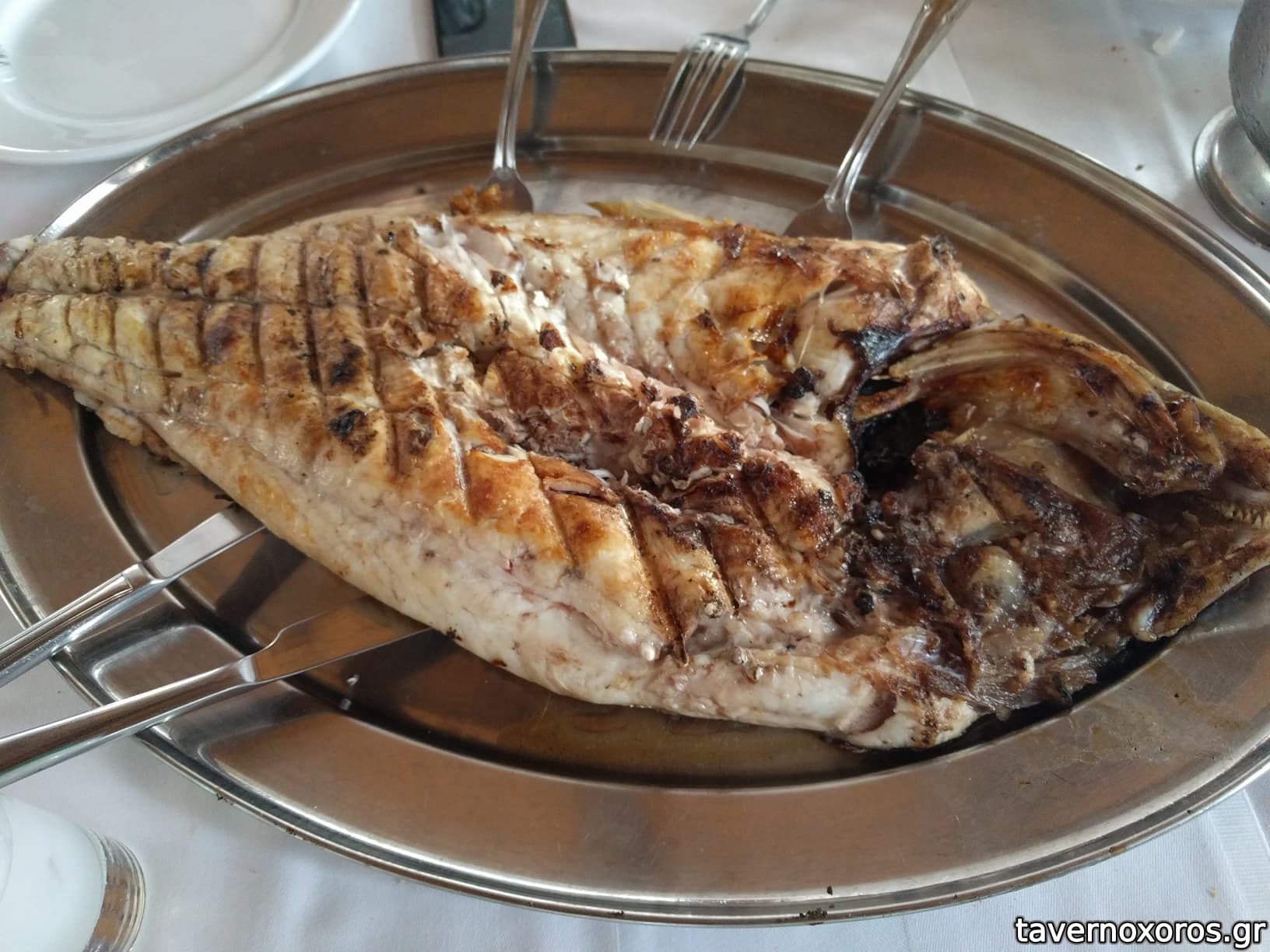 Το ψάρι ήταν φρεσκότατο και πολύ καλά ψημένο και ζουμερό. Το χονδρό αλάτι έκανε μια εξαιρετικά σκληρή κρούστα μέσα στην οποία ψήνεται το ψάρι.