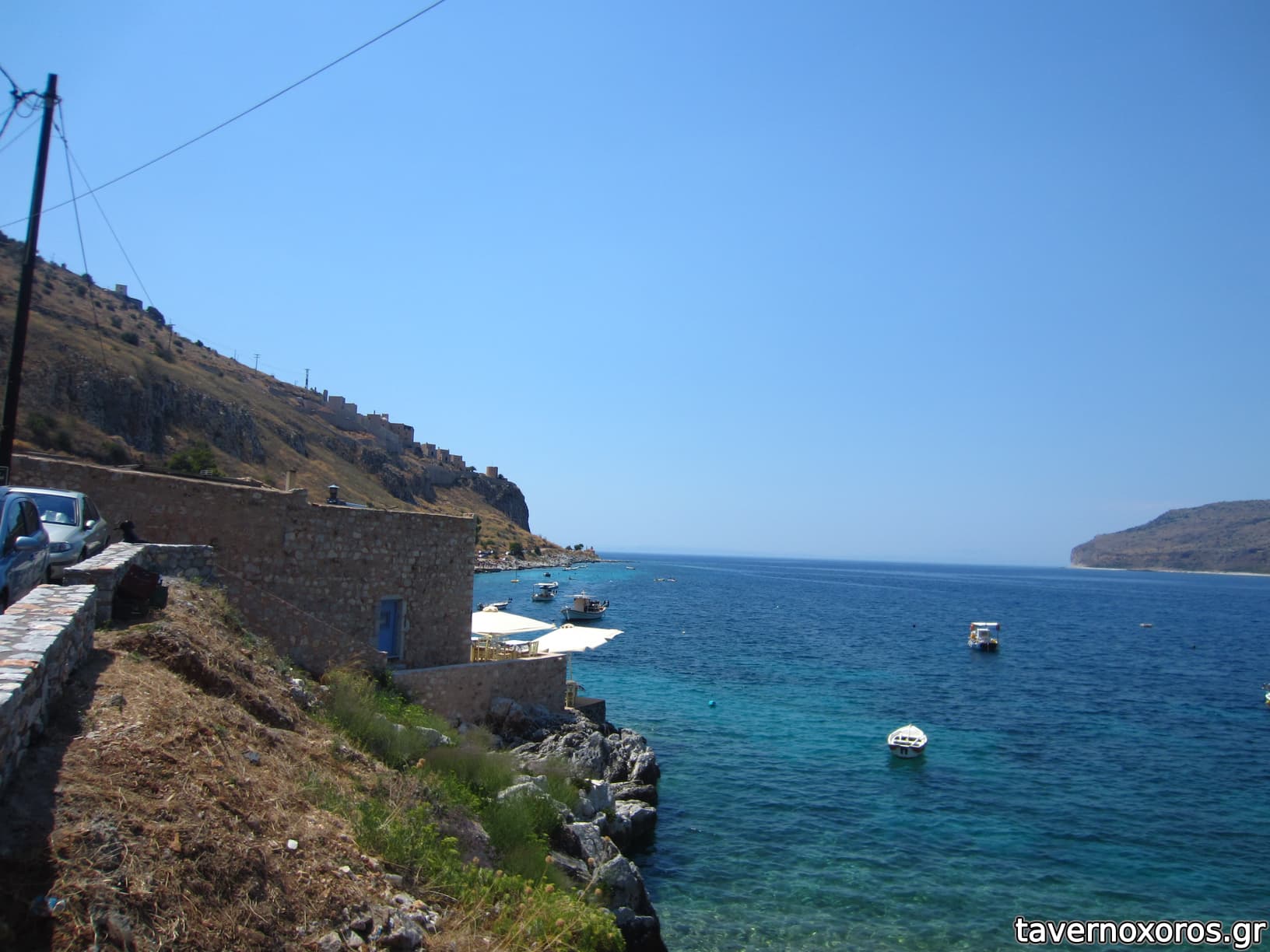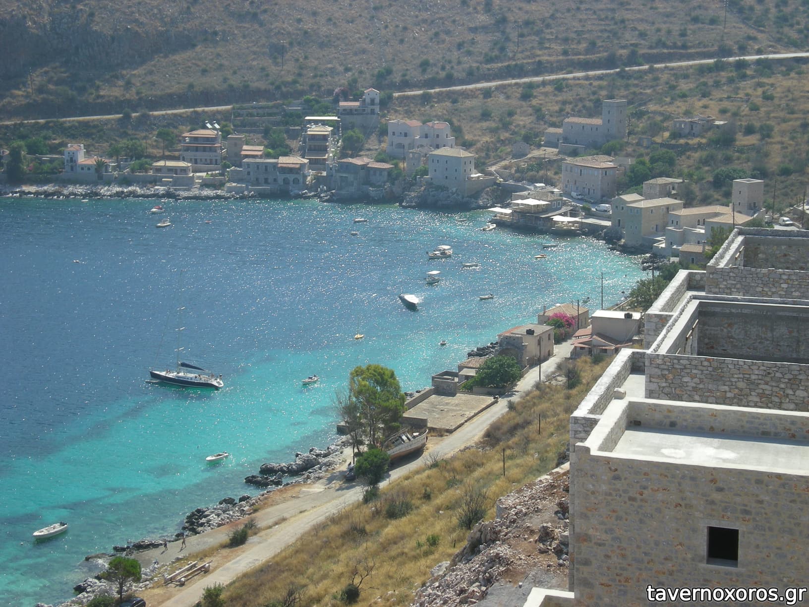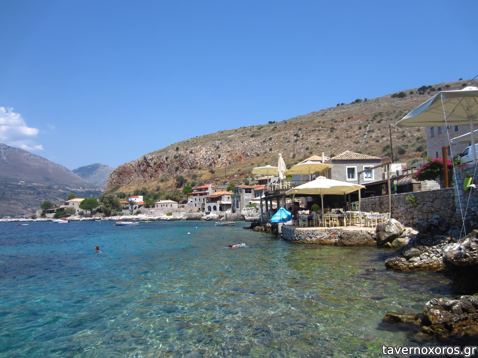 Το Λιμένι, διακρίνεται δίπλα στη θάλασσα η ταβέρνα