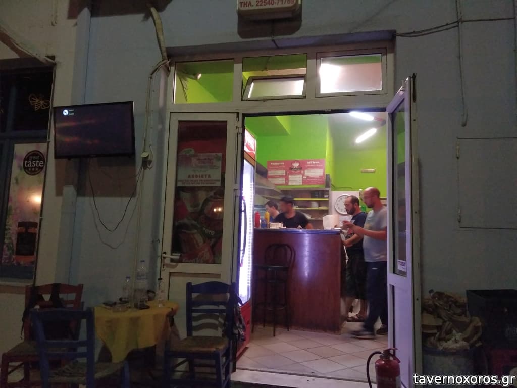 Δοκιμή 8 Αυγούστου Τετάρτη βράδυ γύρω στις 11. Ο γύρος σχεδόν τελειωμένος και ήθελε ψήσιμο. Ζήτησα 2 σουβλάκια χοιρινά σε πίτα πακέτο. Όντως πατάτα κομμένη στο χέρι, στάνταρ το τζατζίκι ή άλλη σαλάτα. 2,5€ έκαστο. Ομολογώ ότι μου φάνηκε πως τους έλειπε κάτι σε αλατορίγανη και ήταν ψιλοαδιάφορα, κατά τα άλλα μια χαρά. Απόδειξη κανονικά, γρήγορη εξυπηρέτηση (ίσως επειδή ήθελα πακέτο). Να σημειώσω ότι τα τραπεζάκια που έχει έξω είναι σχεδόν μόνιμα γεμάτα και ταυτόχρονα τα τηλέφωνα πέφτουν βροχή για παραγγελίες. Δείχνουν να το διαχειρίζονται μια χαρά με έξτρα προσωπικό.