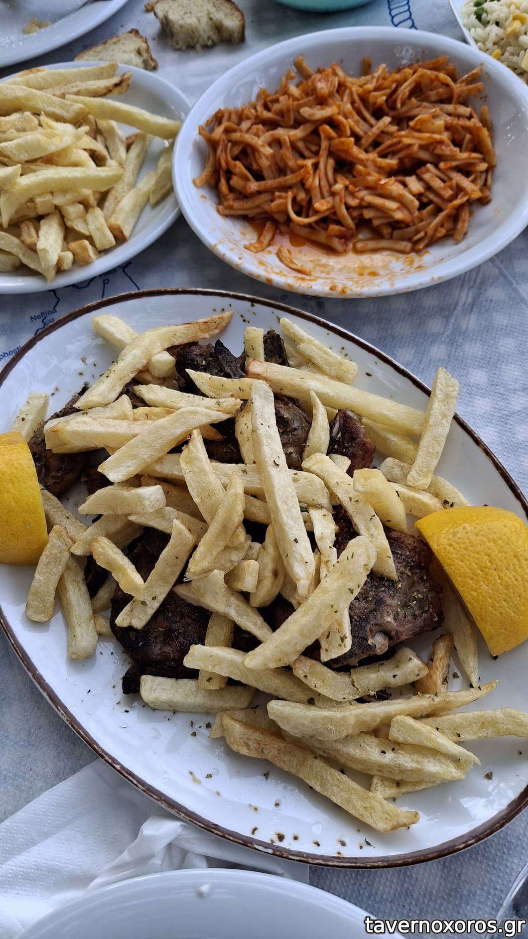 Κλασικη ταβέρνα στην πλατεία του χωριού. Πήραμε ένα μπιφτέκι (καλό), ένα σουβλάκι χοιρινό ( στεγνό, οριακα μέτριο), ένα φιλέτο κοτόπουλο ( καλό), μια καλαμαρακια τηγανητά ( καλά) μια αγγοροντοματα, μια πατάτα, μια μπύρα, μια ρωσική ( μετρια και αρκετά μικρή) ένα 200ρακι τσίπουρο άνευ δικό τους ( πολύ γλυκοπιοτο) και δυο αναψυκτικά. Τιμή 61€ χωρίς απόδειξη, χωρίς γλυκό, τιμές bar-restaurant. Αν θέλεις να φας στην πλατεία του χωριού και να πληρώσεις τιμές gourmet...να πας!!!