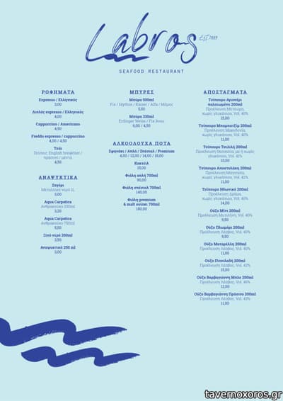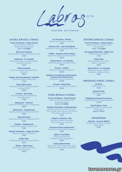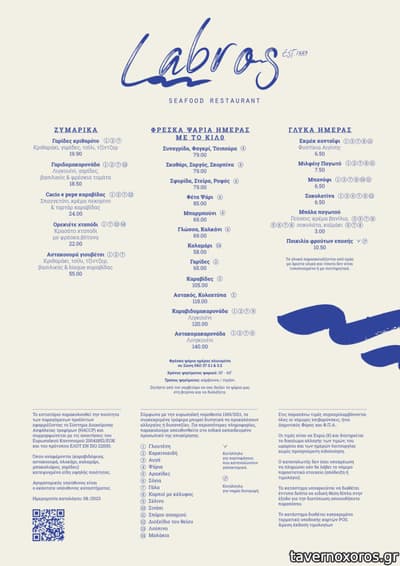 | Λέξεις κλειδιά | Labros, Lampros, #δεξιώσεις, #κοπανιστή, #όστρακα, #αχινοσαλάτα, #μύδια, #καραβίδες, #γαρίδες, #μπακαλιάρος, #σαρδέλα, #καλκάνι, #κωλοχτύπες, #ζυμαρικά, #steaks, #εκμέκ, #μιλφέιγ |