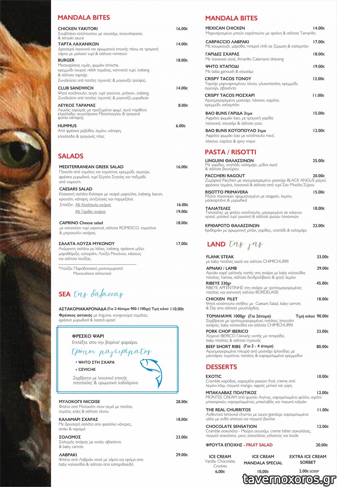 | Λέξεις κλειδιά | Μάνταλα, #seaside, #beach bar, #ξαπλώστρες, #χταπόδι, #γαρίδες, #σολομός, #σαλάτες, #ζυμαρικά, #κοτόπουλο, #club sandwich, #μπακλαβάς |