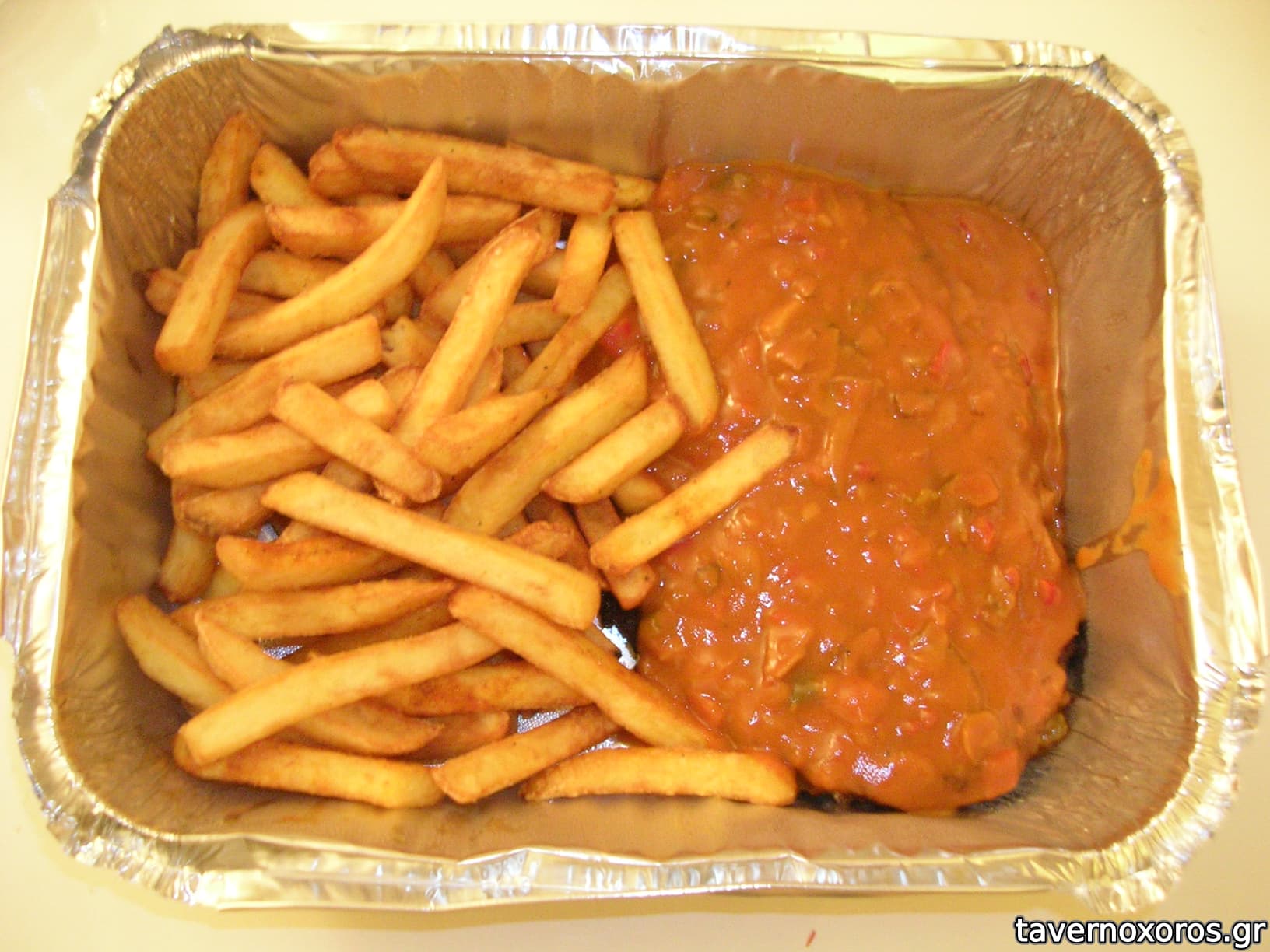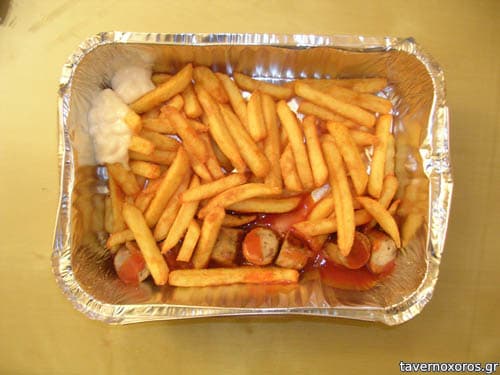 Currywurst mit pommes frites (τιμή 2008: 4,2€)