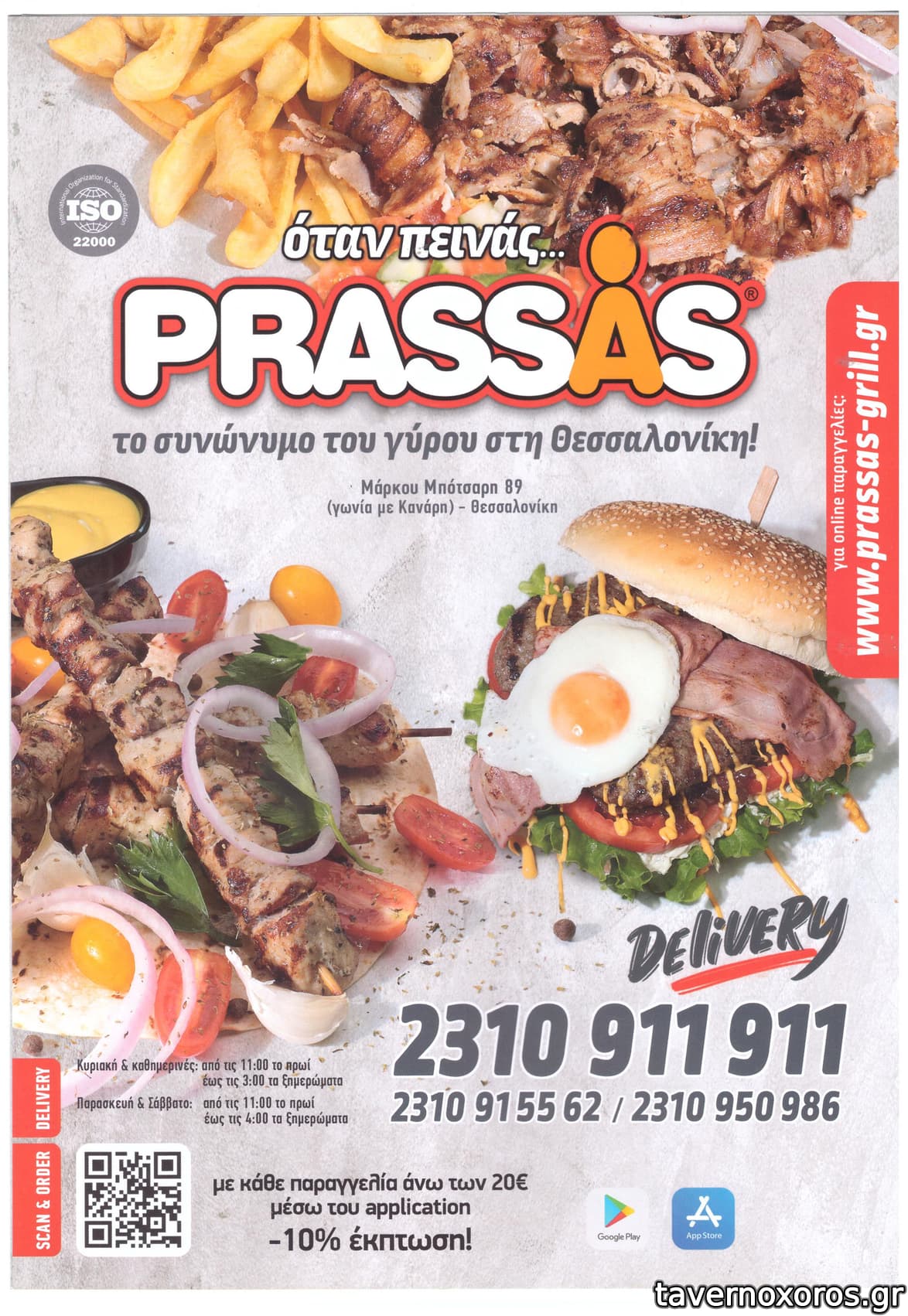 Παραγγελία: 1 γύρο χοιρινό σε πίτα και 1 μπιφτέκι γεμιστό σε ψωμάκι. Παραδόξως ο γύρος, ήταν πολύ καλός. Καλοφημένος, με σχετικά χαμηλό ποσοστό λαδίλας-λίπους για τα δεδομένα του Πρασσά.